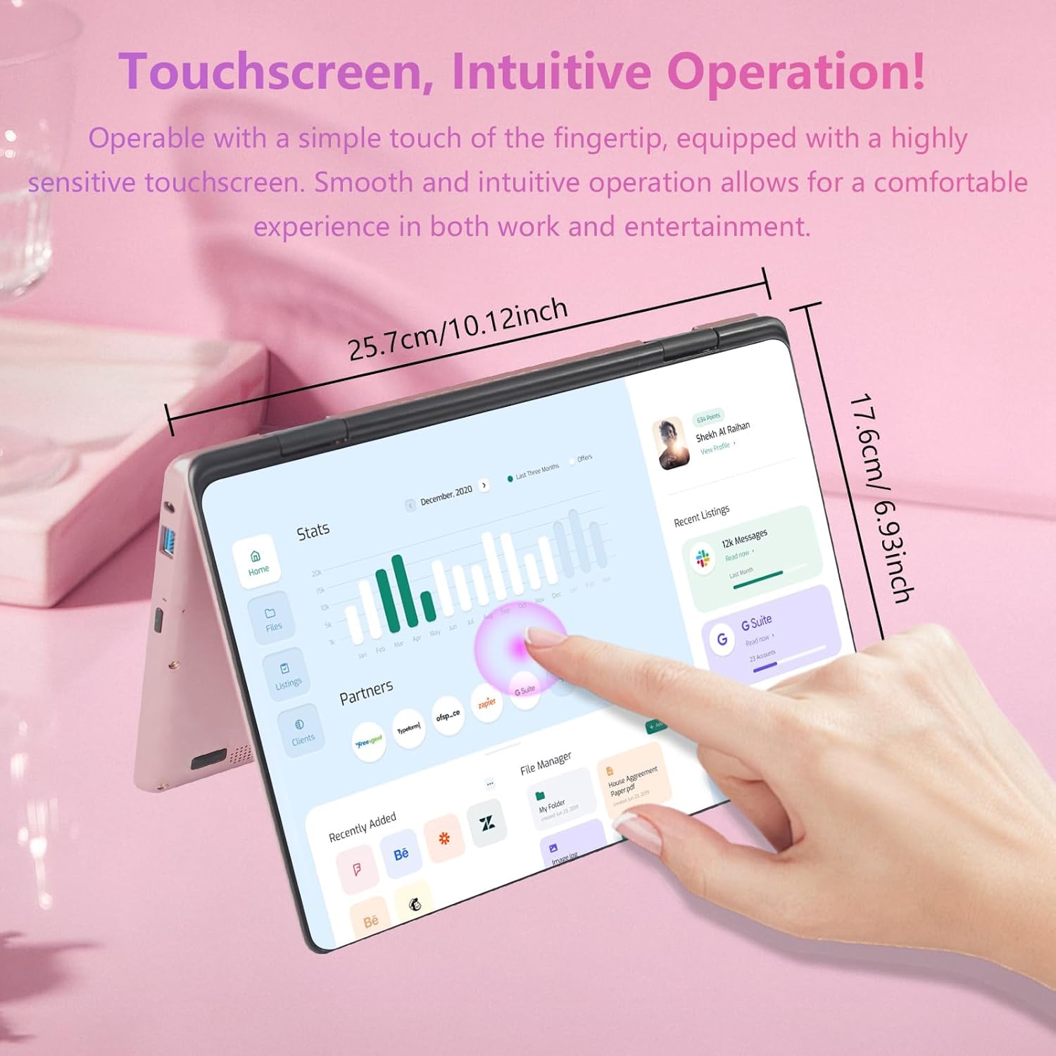 11-inch Pink (or Iron Gray) 2-in-1 Convertible Laptop, powered by Celeron 12th Gen N150 (with a max boost frequency of 3.4GHz), pre-installed with Windows 11. It features 16GB of DDR4 RAM for AMR, and a 512GB SSD hard drive. The laptop boasts a 360-degree flip-and-fold touchscreen with an IPS display in a 16:10 aspect ratio, offering a resolution of 1920x1200 pixels. Crafted with an aluminum alloy shell, it weighs a mere 0.9421kg. Additionally, it is equipped with a 2.0MP (200W) camera capable of capturing 30 frames per second in high definition, Bluetooth 4.2 connectivity, and WIFI functionality.