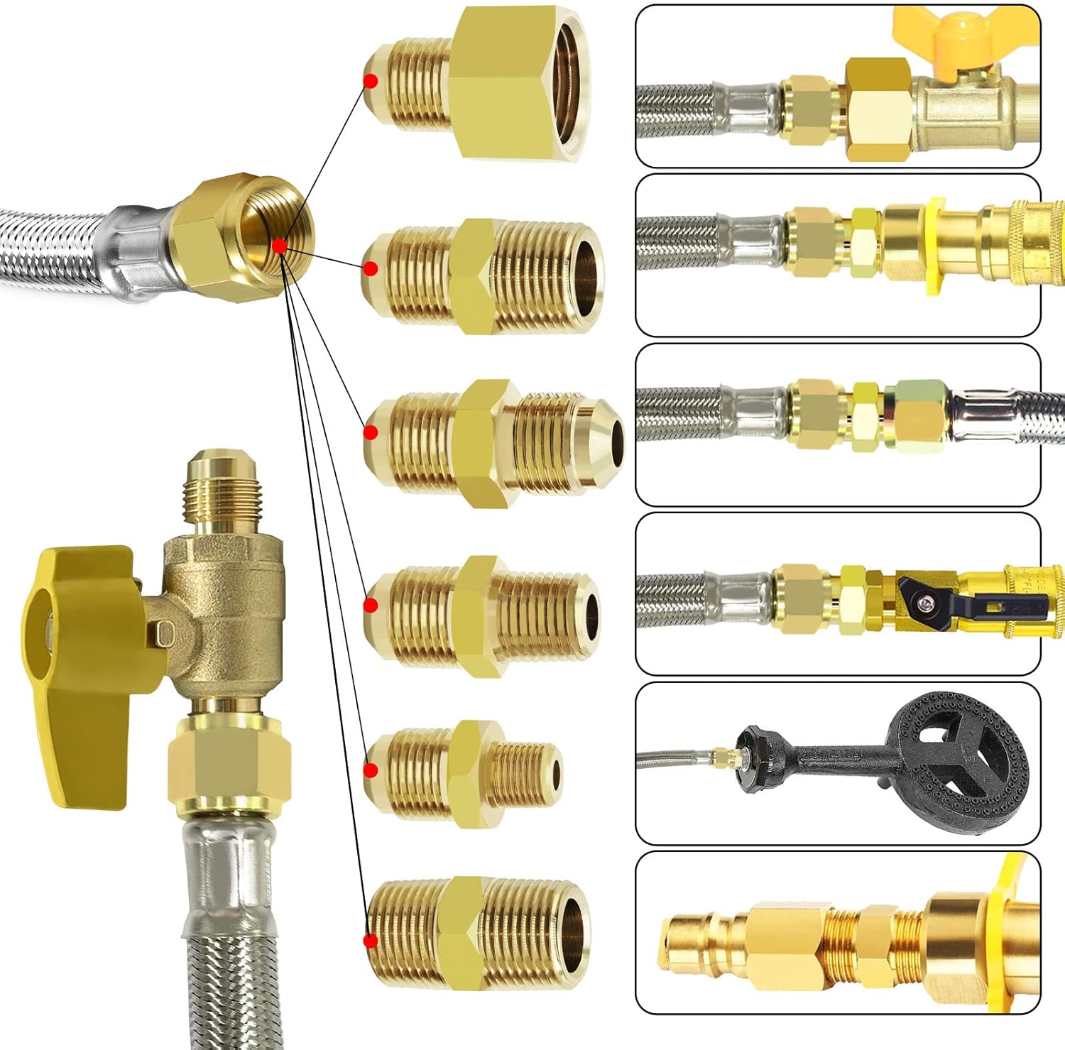 12 Feet High Pressure Braided Propane Hose Extension with Conversion Coupling 3/8" Flare to 1/2" Female NPT, 1/4" Male NPT, 1/8" NPT Male,3/8" Male NPT, 3/8" Male Flare for BBQ Grill, Fire Pit, Heater