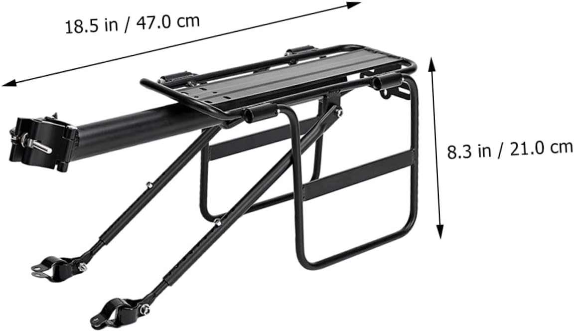 Package Include 1 x Bike Rear Rack Features -Size: 47.00X21.00X13.50cm/18.47X8.25X5.31in Bike Cargo Rack -Color: Black Bike Luggage Rack -Material: Aluminum Alloy Bike Rear Rack -Enough strong loading and bearing capacity for carrying of things while travel Cargo Luggage Rack. -Light weight, no extra burden on the bike Cargo Holder. -The bike luggage rack, for road bike, folding bike, mountain bike, disc brake bike, etc Rear Rack. -Selection of aluminum alloy, sturdy and , which can be used for a long time Mountain Bike Rack. -Rugged and rack that mounts to the back of bikes to help you easily transport for bags, panniers, backpacks, cargo, , and more Mountain Bike Cargo Rack.Goods Description Cargo Holder Fits of the bikes like bike, road bike, disc brake bike, folding bicycle, bike and other applicable models.Strong-loading Rack This item is a bike rear rack, adoption of aluminum alloy material, and wear resistant