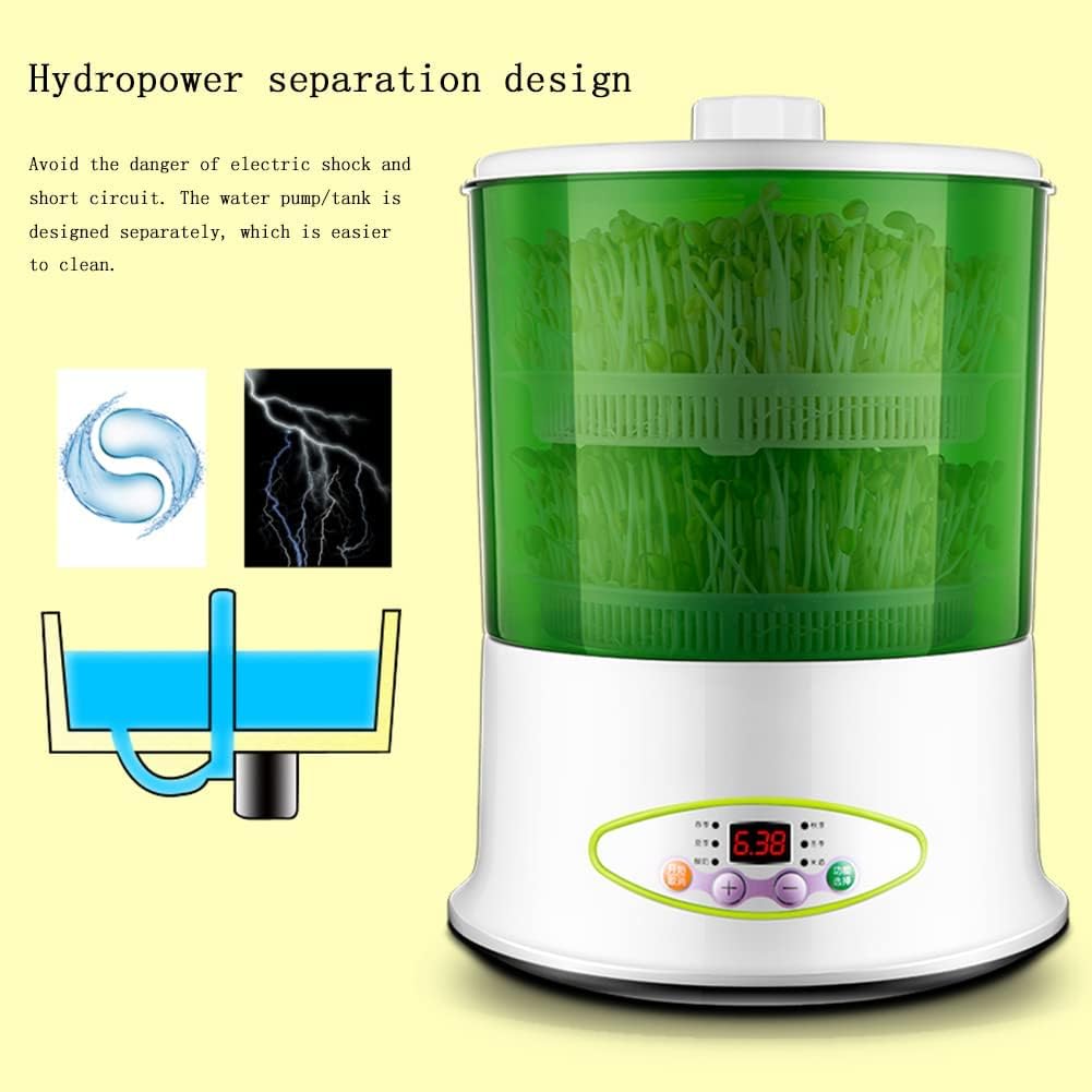 Specifications Size: 26*33CM ( 10.2*12.9IN ) Color: Green Cultivation Ability: 3-6 Bean Sprouts: About 2. 5-5 Days Material : PP+ABS Rated Power: 220V-50HZ Constant Temperature: 20W Pump Power: 8W Germination Time: 3-7 Days Fermented Yogurt: 8 -12 Hours Wine Time: 28-38 Hours Number of Applicants: 2-6 People Energy Saving: Super Energy Saving Can effectively process the following seeds and sprouts: soybean, white bean, mung bean, red bean, black bean, pea, etc. Features: 1.3 Fully automatic intelligent control modes. Four seasons. 2. Automatic watering system: 360 degree water 3. Safety design: hydraulic separation design, no worry about leakage. Different from other displays, there may be a little color difference, please understand ? Replace the fresh water in the water container once or twice a day . It is recommended not to plant transgenic soybeans that can only be used for food. Most yellow soybeans are transgenic. Therefore, we recommend green peas. If you have any questions, please feel free to contact us. We will provide you with the best service.