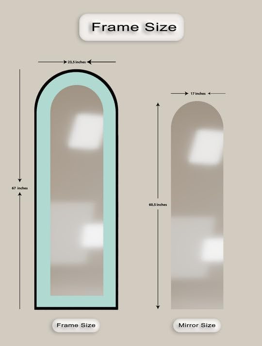 Arch Shaped Floor Mirror with Metal Frame – Gold, Black, or Silver | Leaning, Standing, or Wall-Mounted Full Body Mirror Add artistic charm and functional elegance to your space with our Arch Full Length Mirror, designed to make a bold statement in any room. Whether styled in a bedroom, hallway, or living room, this arched floor mirror enhances your interior with timeless beauty. The edges of the mirror consist of pictures in the colors of your choice printed on tempered glass using the UV printing technique. The mirror itself is mounted on top of this printed tempered glass, giving it a vibrant, durable, and luxurious finish that stands out in any setting. Measurements; TOTAL SIZE (Uv Printed Tempered Glass + Mirror) : 23,5’’W x 67’’ H ONLY MIRROR SIZE : 17’’W x 60,5’’ H Choose from three premium frame finishes—Arch gold mirror, sleek black, or arch floor mirror silver—and enjoy flexible use as a Standing Floor Mirror, Arched Wall Mirror, or casually leaned for a designer look. This is more than a Full Body Floor Mirror with Stand—it’s a piece of functional art. Multiple Placement Methods, This arched floor mirror comes with a U-shaped bracket, which you can freely place in the living room or bedroom. For your convenience in hanging on the wall, special hangers are designed on the back of the mirror.Our premium mirrors are crafted by gluing 4mm tempered glass to a 4mm mirror, combining durability and style. The tempered glass features UV printing for a glossy, vibrant look, while both the glass and mirror have smooth, grinded edges for safety. The hidden metal hanger ensures a sleek, ready-to-hang design, making it an elegant and functional addition to any room.
