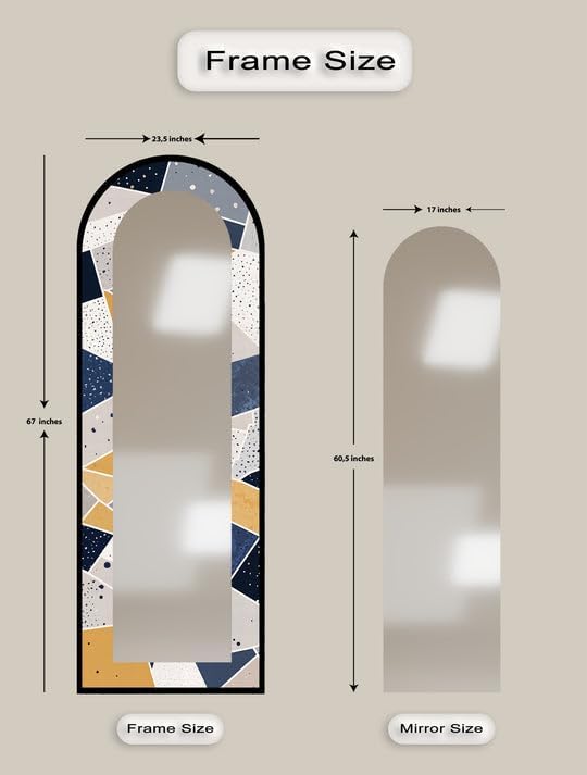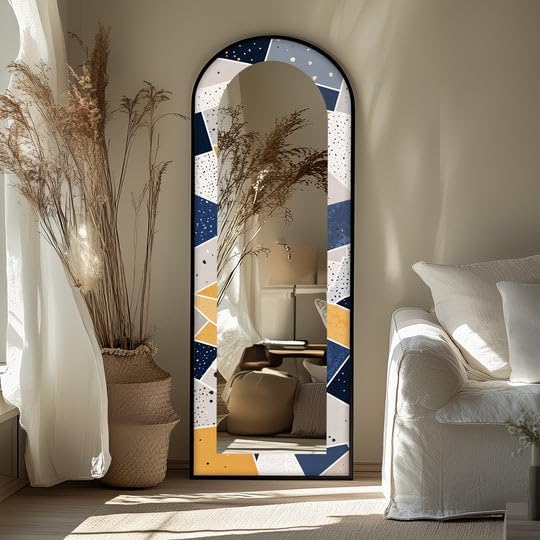 Arch Shaped Floor Mirror with Metal Frame – Gold, Black, or Silver | Leaning, Standing, or Wall-Mounted Full Body Mirror Add artistic charm and functional elegance to your space with our Arch Full Length Mirror, designed to make a bold statement in any room. Whether styled in a bedroom, hallway, or living room, this arched floor mirror enhances your interior with timeless beauty. The edges of the mirror consist of pictures in the colors of your choice printed on tempered glass using the UV printing technique. The mirror itself is mounted on top of this printed tempered glass, giving it a vibrant, durable, and luxurious finish that stands out in any setting. Measurements; TOTAL SIZE (Uv Printed Tempered Glass + Mirror) : 23,5’’W x 67’’ H ONLY MIRROR SIZE : 17’’W x 60,5’’ H Choose from three premium frame finishes—Arch gold mirror, sleek black, or arch floor mirror silver—and enjoy flexible use as a Standing Floor Mirror, Arched Wall Mirror, or casually leaned for a designer look. This is more than a Full Body Floor Mirror with Stand—it’s a piece of functional art. Multiple Placement Methods, This arched floor mirror comes with a U-shaped bracket, which you can freely place in the living room or bedroom. For your convenience in hanging on the wall, special hangers are designed on the back of the mirror.Our premium mirrors are crafted by gluing 4mm tempered glass to a 4mm mirror, combining durability and style. The tempered glass features UV printing for a glossy, vibrant look, while both the glass and mirror have smooth, grinded edges for safety. The hidden metal hanger ensures a sleek, ready-to-hang design, making it an elegant and functional addition to any room.