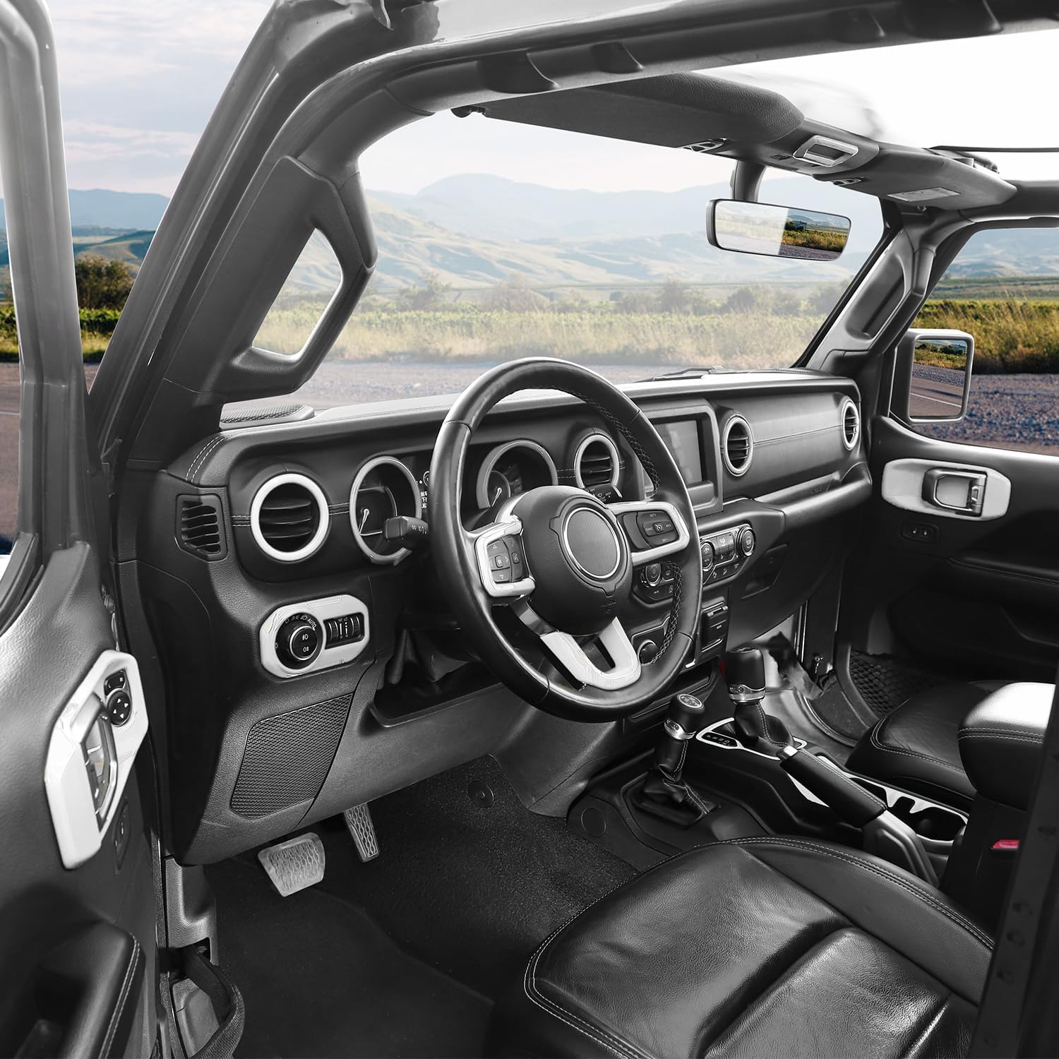 Company Ideas: SQQP offers a wide range of accessories to enhance and upgrade both the look and function of your vehicle.We sincerely appreciate your decision to purchase our products, we always committed to providing the high-quality, safe automotive decorative products and the excellent, professional and customer service. Item Description:Fitment Compatible with Jeep Wrangler JL JLU JT 2018 2019 2020 2021 2022 2023Condition: 100% Brand NewMaterial: Made of high quality ABS plasticColor:Purple Features:-Crafted from automotive grade ABS plastic, anti slight impact and durable for long time use..-Scratch-resistant and durable,protect the original car from scratches. deal with Edging , not hurting hands or car.-Purple adds an updated, unique and elite appearance,makes your car out of ordinary.-Made by professional manufacturer,quality assurance.Installation Method:Step1Clean surface and remove any dirt, oils before attaching decal. Place decal on a hard smooth surface. (front side of decal facing up)Step2. Slowly peel off the back sheet off the decal. (make sure do not let any water or dirty get on the back of this decal)Step3. Slowly apply the decal to the smooth surface you like. (Keep it slowly to avoid any air bubble)Step4.Please keep it dry in 24 hours. Attention:Because the same model car may be differently produced in different country. Please ensure the part of your car like our picture showsPackage Include:4*Side Outlet Trim1*Headlight Switch Trim3*Steering Trim2*Top Roof Speaker Trim3*Dash Board Trim3*Reading Light Trim4*Inner Door Handle Bowl Covers1*Gear Shift Panel Cover1*Front Cup Holder Cover 1*Rear Outlet TrimSQQP have other universal interrior & exterrior accessories,please browse our store in detail, You will find more automotive accessories to your satisfaction,thank you!