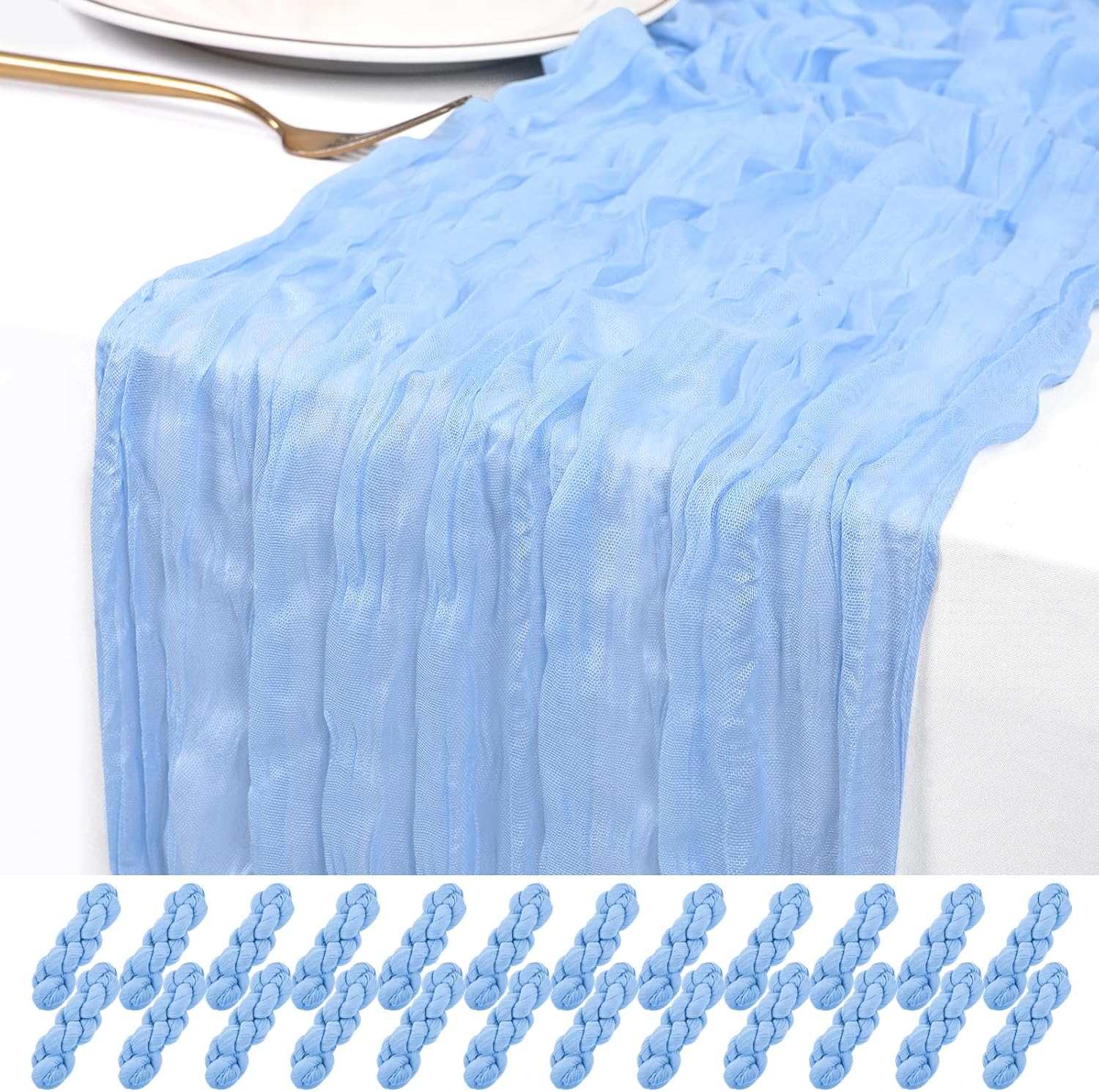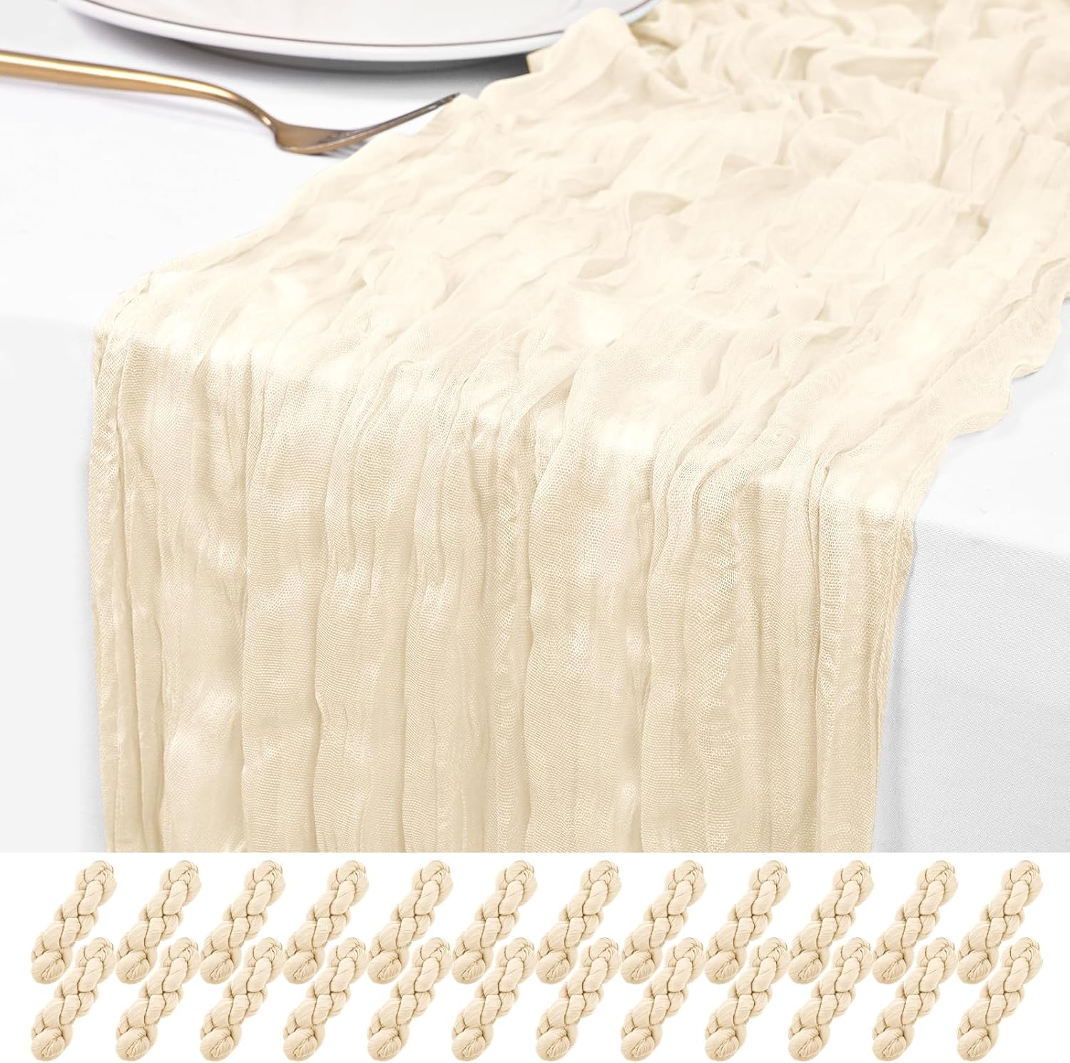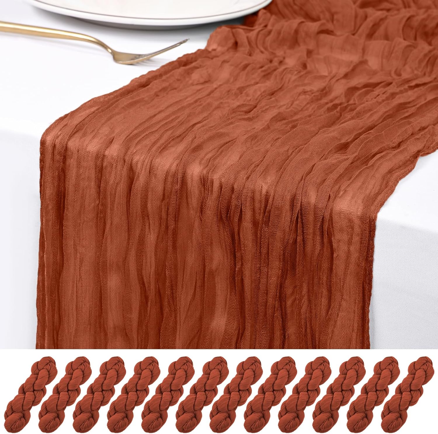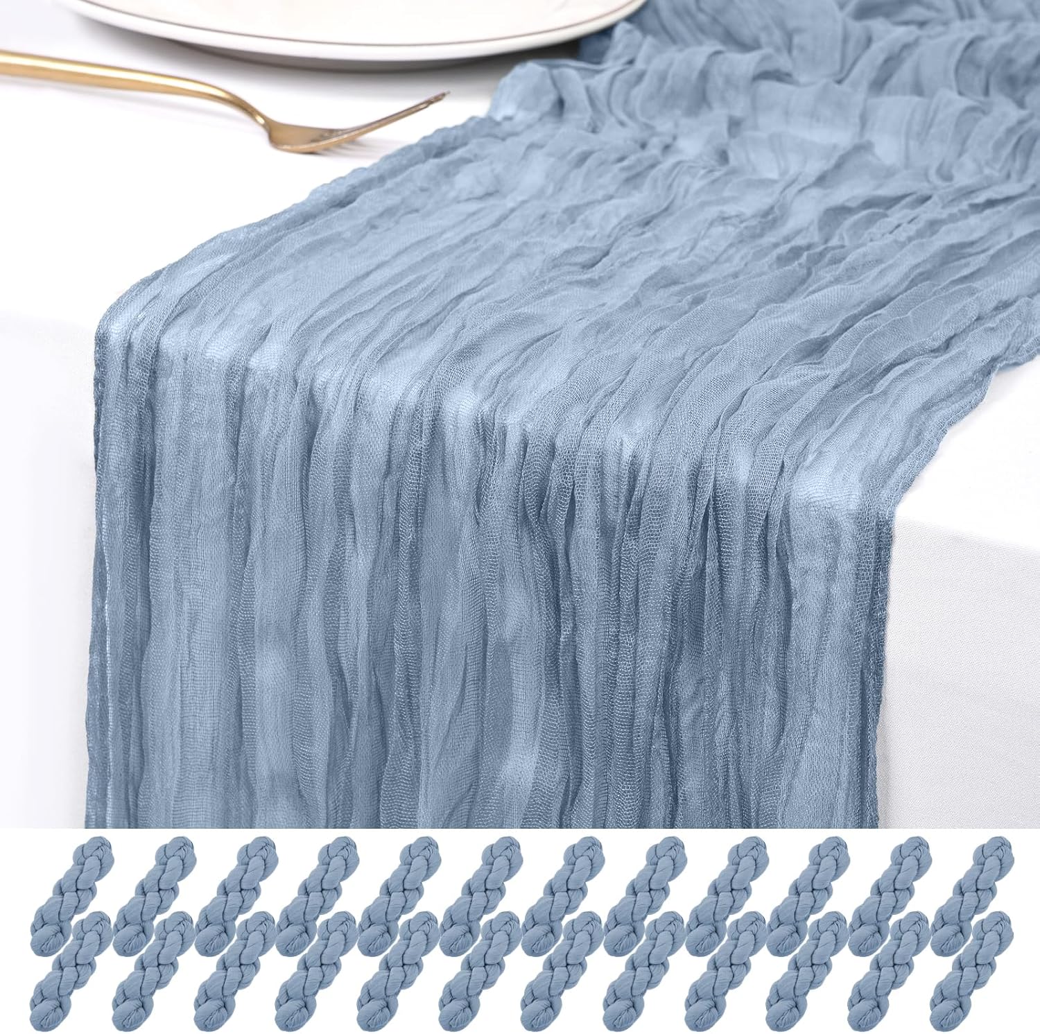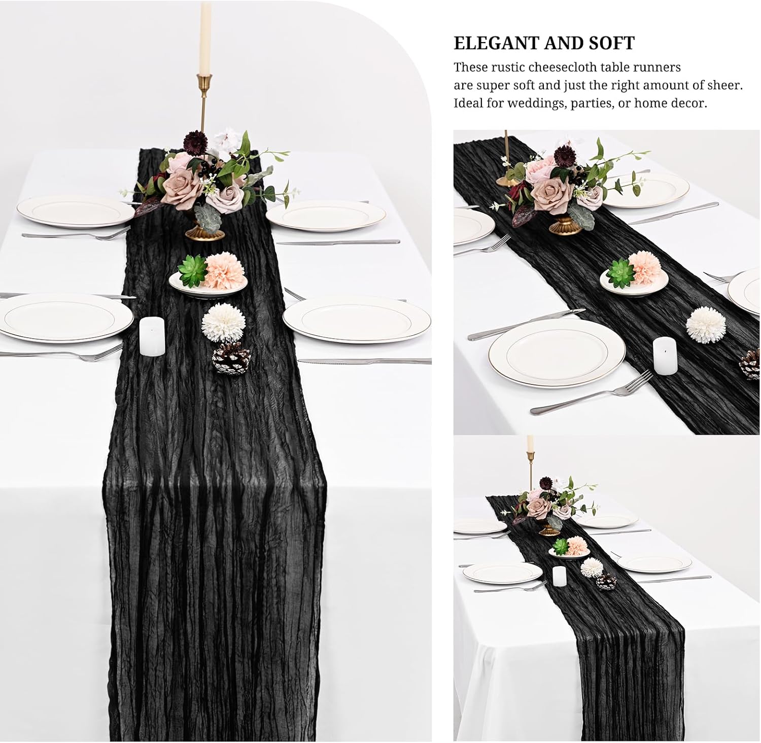 This 24 pack of black cheesecloth table runners will surprise you with its versatile application, adding a touch of rustic elegance to various settings. As someone who occasionally hosts events and appreciates a well-dressed table.Boho Cheesecloth Table Runner Gauze Tablecloth Rustic Decorations for Wedding Decor Reception Party Table RunnersThe cheesecloth table runners adopt unique pleated workmanship, makes the fabric of the table runner naturally show a beautiful and elegant wrinkle textureProduct Specifications:Product name: Cheesecloth table runner/Wedding table runnerMaterial: 100% cotton cheesecloth fabricDimensions: 20 x 120 Inch/10Ft black cheese cloth table runnerProduct Features:1.Large enough to dress up most rectangle and round tables, enough quantity is suitable for your wedding party bridal baby shower.2.Made of premium polyester, soft to touch, sheer and light, premium gauze table runner with wrinkled gauze fabric3.The table runner is designed with seamless wrinkle and fine workmanship, elegant pleated texture easily adds a noble touch to your party. Table Runner for Any OccasionCheesecloth wedding table decor to meet your different subject of events like weddings, banquets, birthday backdrops, cheesecloth for arch or dinner party, bridal shower decorations baby shower decor, cheesecloth bridal arch, candy buffet, and other various parties.They can also be applied to spicing up chair frames, curtains, fireplace, shelf, TV stand, sofa, bedside table and any other furniture. Add some flowers, candelabrum or tableware to the tabletop to instantly make an ordinary banquet more deluxe.Whether you’re hosting a brunch, a garden-inspired dinner, or simply sprucing up your everyday dining area, a thoughtfully designed tablescape can transform any gathering into a memorable experience.