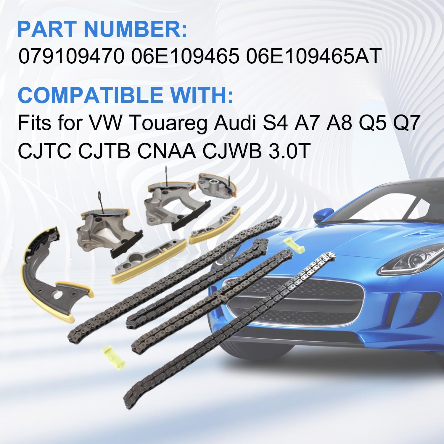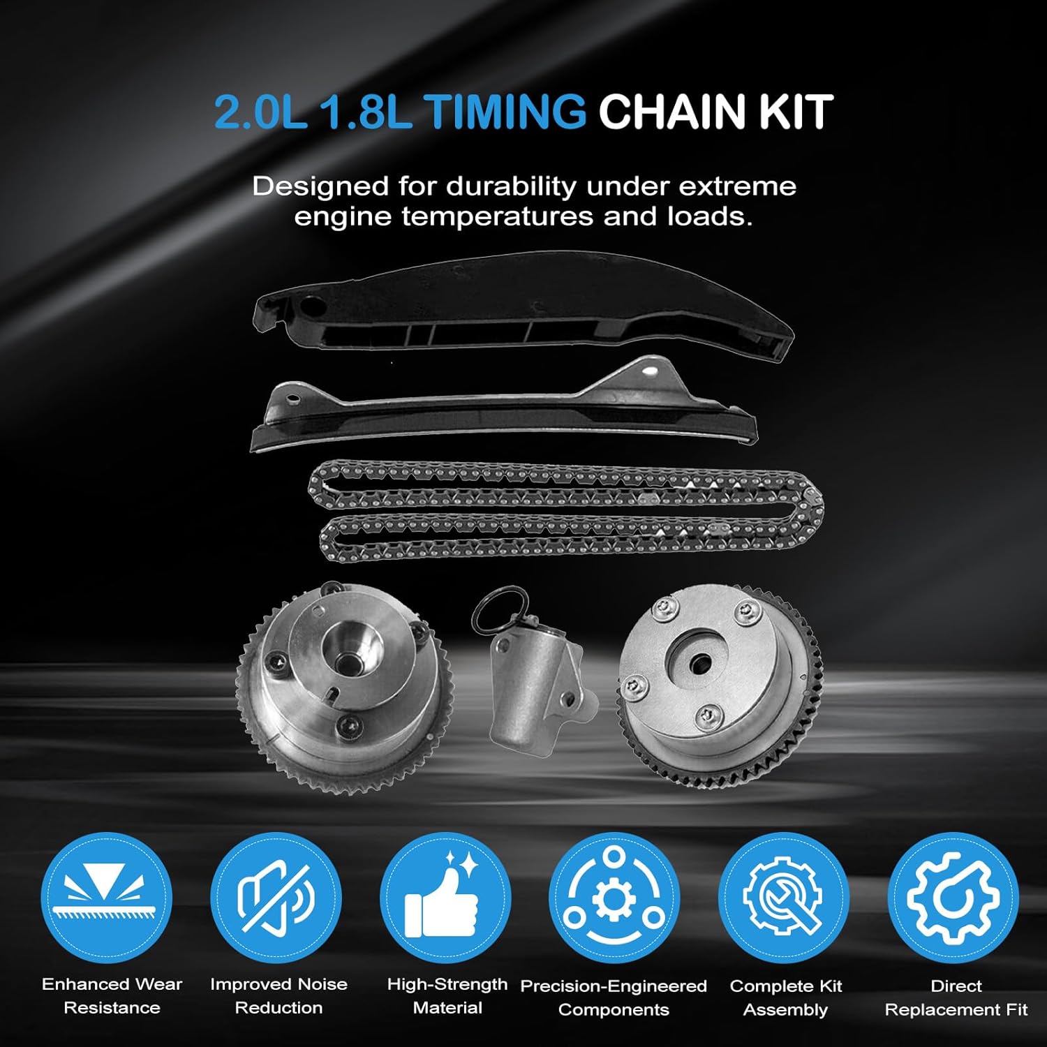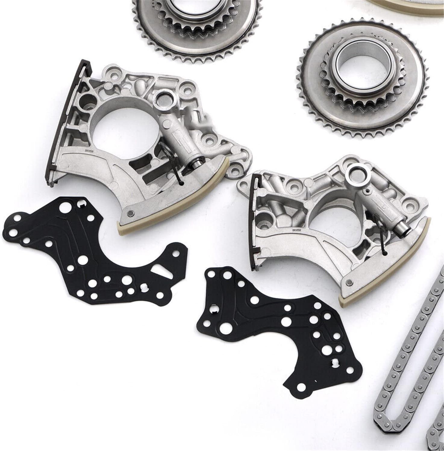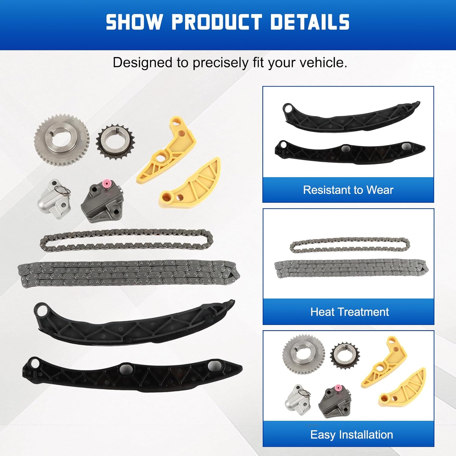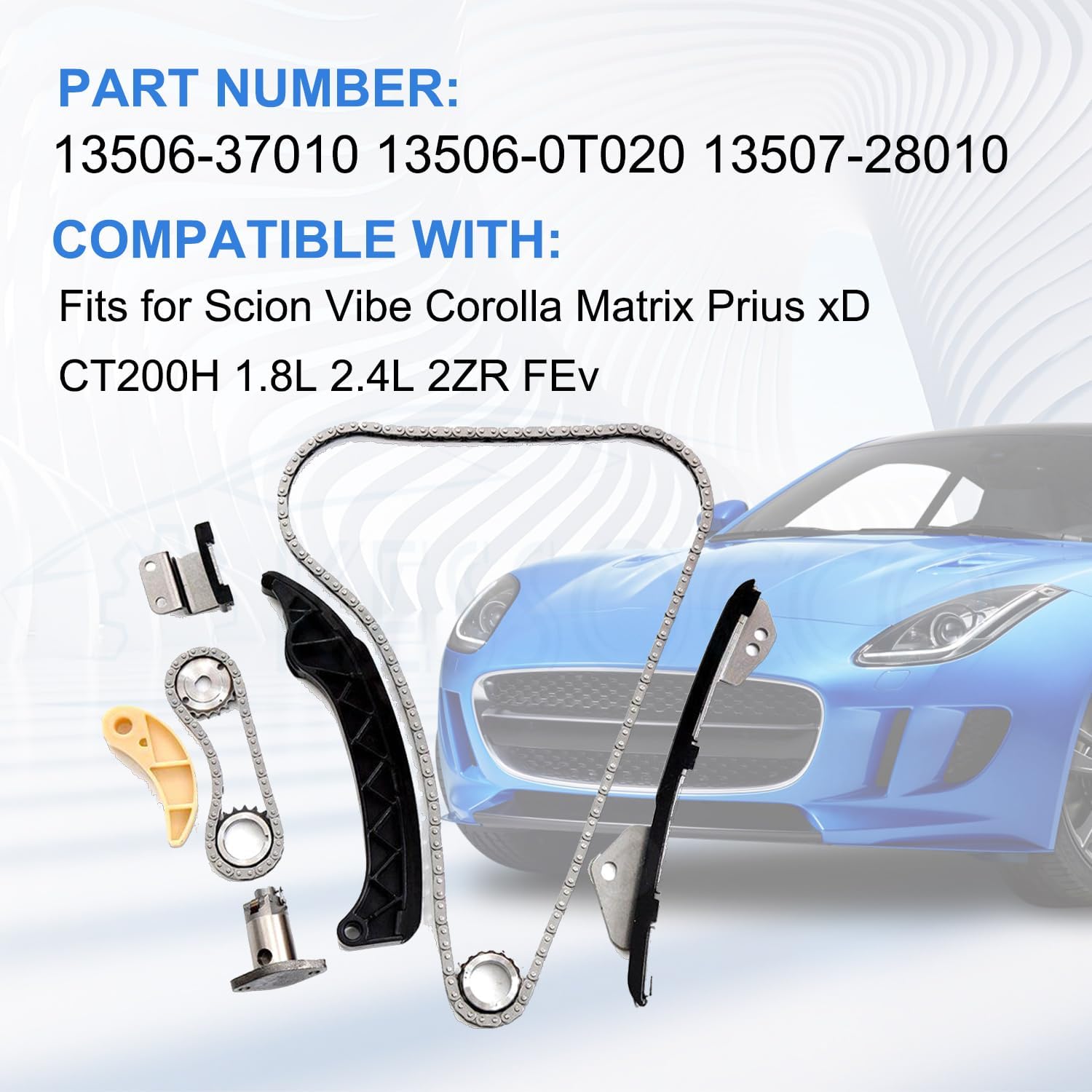 Specification:Type Name: Timing Chain Kit + 2PCS Intake Exhaust Camshaft AdjustersCondition: New and High QualityPart Number: 24321-2E200 24410-2E000 24420-2E200 24430-2E000243212E200 244102E000 244202E200 244302E000 244302J00024430-2J000 24350-2E201 24370-2E200 243502E201 243702E200Fitment Type: Direct ReplacementVehicle Fitment:Compatible with 2014-2020 Elantra GT 2.0L 1999CC l4 GAS DOHC Naturally Aspirated;Compatible with 2014-2020 Tucson 2.0L 1999CC l4 GAS DOHC Naturally Aspirated;Compatible with 2016-2020 Tucson 2.0L 1999CC 122Cu. In. l4 GAS DOHC Naturally Aspirated;Compatible with 2017-2020 Optima 2.0L 1999CC 122Cu. In. l4 FULL HYBRID EV-GAS (FHEV) DOHC Naturally Aspirated;Compatible with 2017-2020 Optima 2.0L 1999CC 122Cu. In. l4 PLUG-IN HYBRID EV-GAS (PHEV) DOHC Naturally Aspirated;Compatible with 2016-2019 Sonata 2.0L 1999CC l4 FULL HYBRID EV-GAS (FHEV) DOHC Naturally Aspirated;Compatible with 2016-2019 Sonata 2.0L 1999CC l4 PLUG-IN HYBRID EV-GAS (PHEV) DOHC Naturally Aspirated;Compatible with 2014-2019 Forte 2.0L 1999CC 122Cu. In. l4 GAS DOHC Naturally Aspirated;Compatible with 2014-2019 Soul 2.0L 1999CC 122Cu. In. l4 GAS DOHC Naturally Aspirated;Compatible with 2014-2018 Forte5 2.0L 1999CC 122Cu. In. l4 GAS DOHC Naturally Aspirated;Compatible with 2014-2016 Elantra 2.0L 1999CC l4 GAS DOHC Naturally Aspirated;Compatible with 2014-2016 Forte Koup 2.0L 1999CC 122Cu. In. l4 GAS DOHC Naturally Aspirated;Compatible with 2014 Elantra Coupe 2.0L 1999CC l4 GAS DOHC Naturally Aspirated;Package Includes:1x Intake CVVT Gear1x Exhaust CVVT Gear1x Timing Chain - Roller 72 LINKS1x Chain Guide Rail1x Tensioner Arm Guide Rail1x Timing Chain Tensioner▶Notice:1. Please confirm your Vehicle Identification Number with our part number or interchange part number before ordering.2. Please make sure that the model number, and photo are the same as yours before ordering.3. If not sure, please send me some pictures of your original item & VIN number before ordering.4. We recommend professional installation when you are not familiar with it. Be careful when installing and testing, otherwise, it will cause damage to the parts.5. Communication is the best way to solve the problem. If you have any problems after purchasing, please contact us in time, before opening return or case.▶Excellent After-Sales Service:Kessocco has a professional technical team, that not only offer top-notch products but also provide outstanding after-sales service. Customer satisfaction is of utmost importance to us. Our professional team is available to support you after your purchase, assisting with any inquiries and providing technical guidance