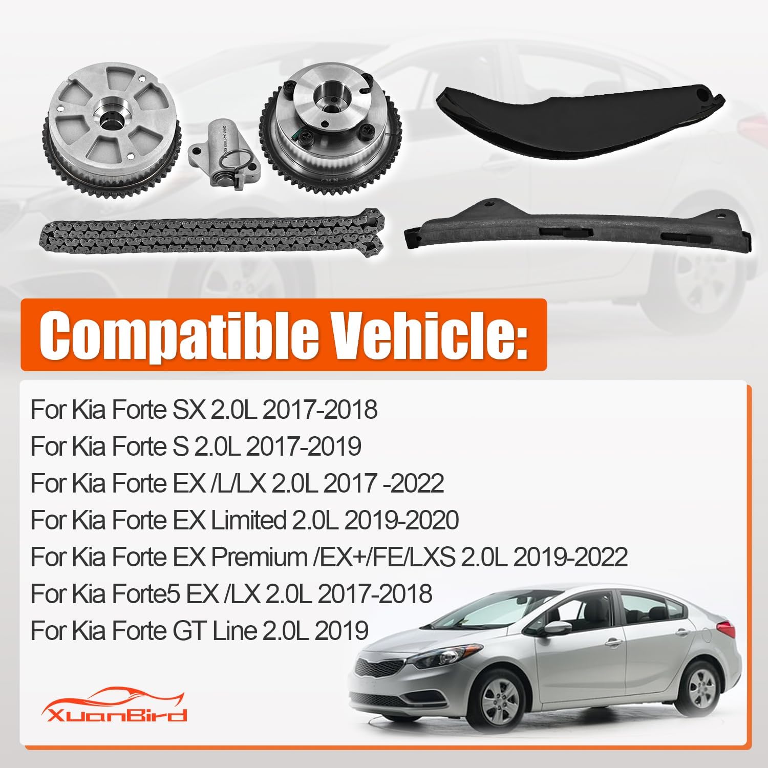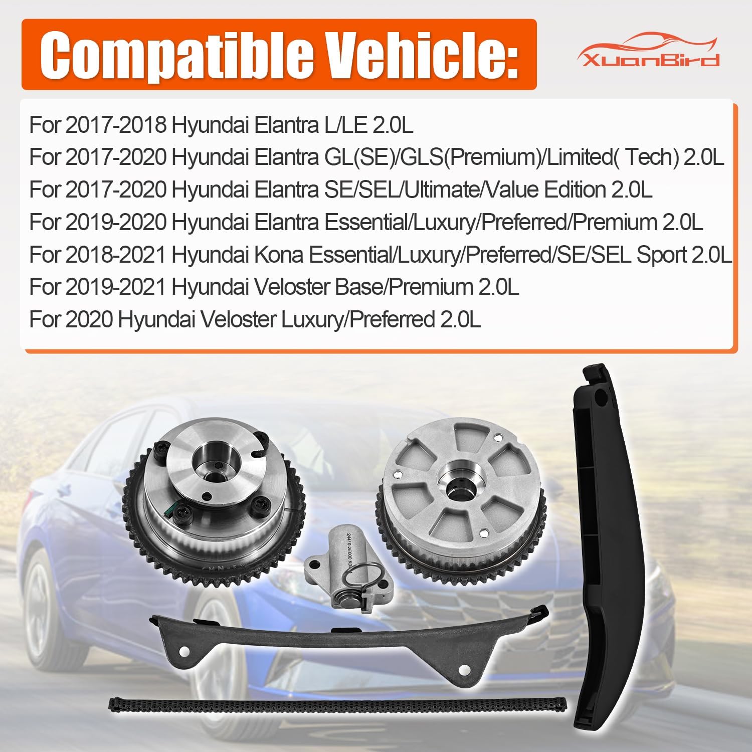 | Model | 24350-2E700 243212E010 Timing Chain Kit with VVT Gear Sprocket Intake & Exhaust Fit for Hyundai & Kia 2017-2022 2.0L |