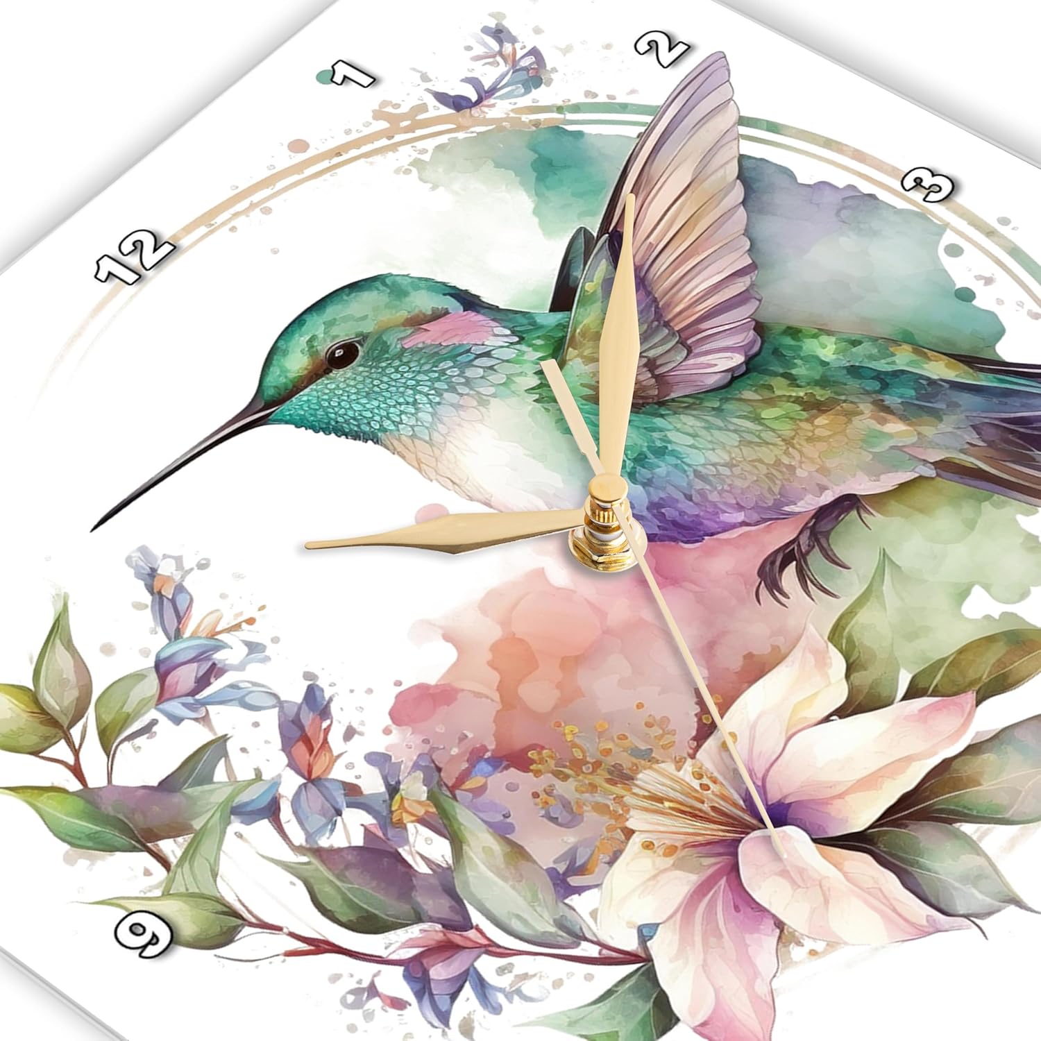 A decorative large picture wall clock is a wonderful complement to any room's decor in your home or office. Whether you are looking to match your rustic farmhouse décor or a modern boho style furnishing, we have thousands of contemporary and vintage art styles from which to choose. Decorate your kitchen bathroom bedroom or living room with a unique clock with a bird, beach, cat or even a sage green nautical ocean scene. The ideal birthday or holiday novelty gift for your loved one, chose a clock with a photograph that suits their taste. Numbers are printed in white with a black border as part of the image for easy viewing. Our durable high-grade aluminum is even suitable for a moist environment like a covered outdoor patio.The battery operated no ticking quartz technology will delight teen kids and adults alike. The photo clocks are square with no frame, available in sizes ranging from 10" x 10" to 15" x 15". Requires one AA battery in the uncovered battery box, not included. Made in USA.