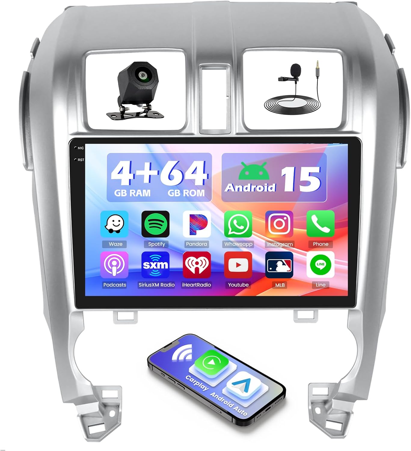 | Additional Features | Touchscreen, Carplay, Android Auto, Bluetooth5.0, GPS Navigation, 4+64GB, FM RDS, EQ , DSP, Customize Homepage App |