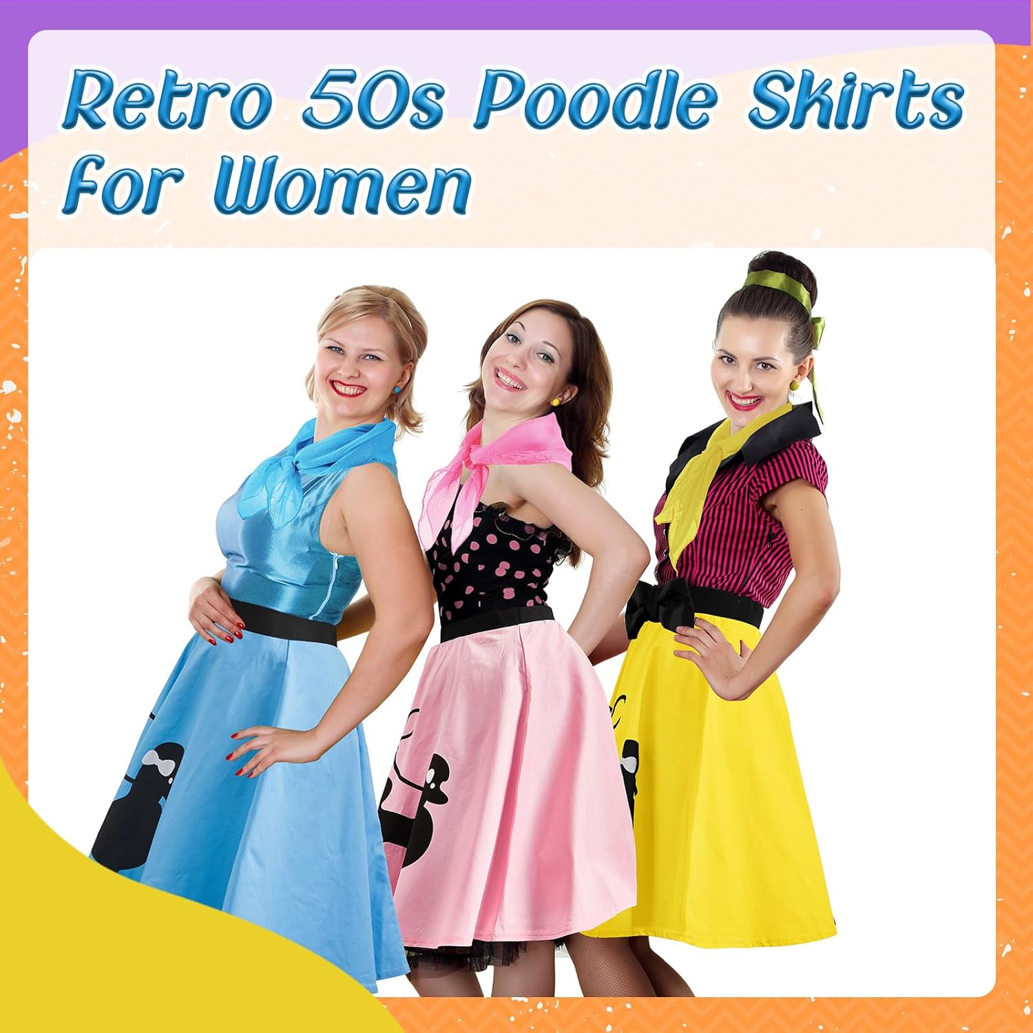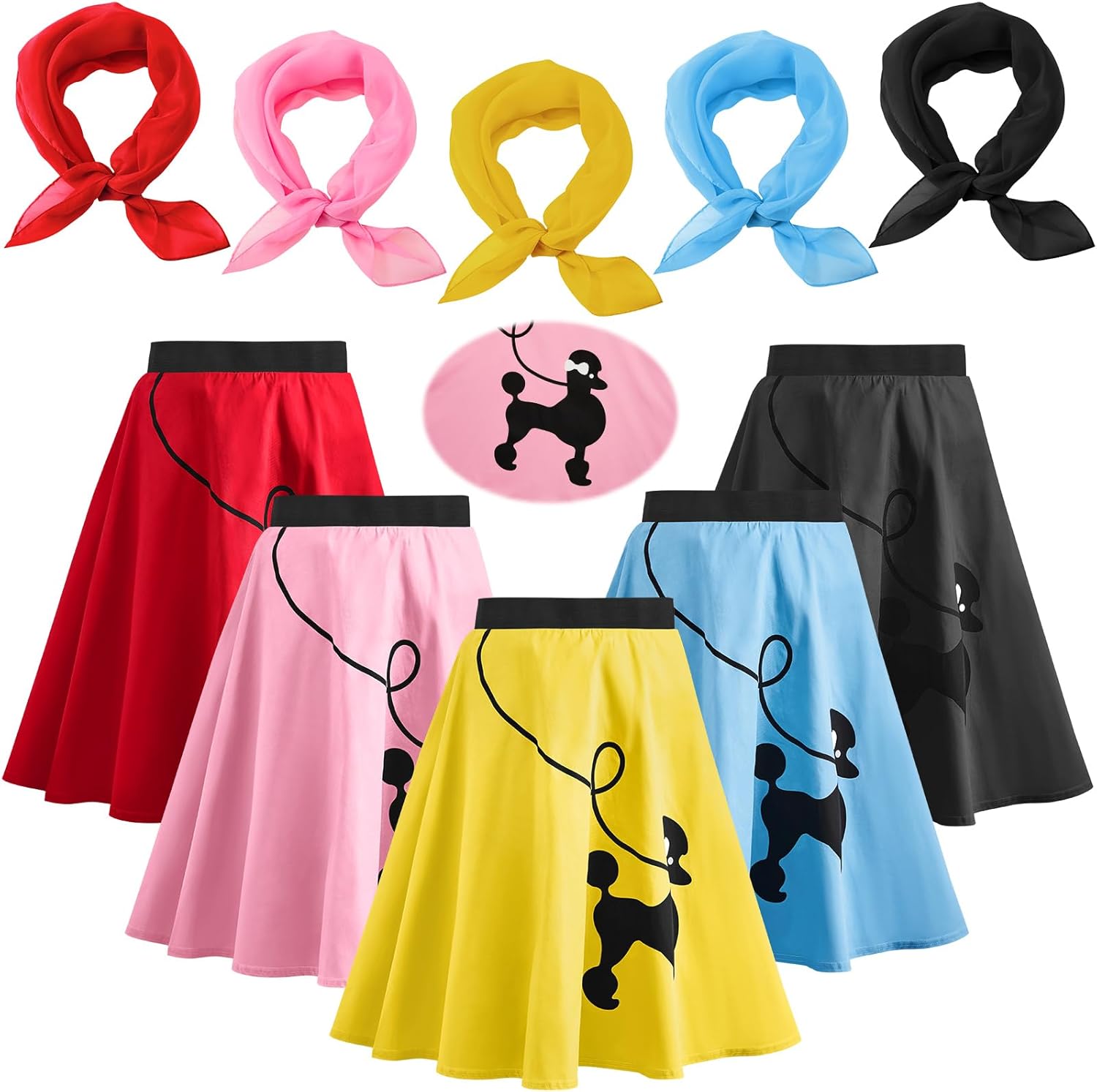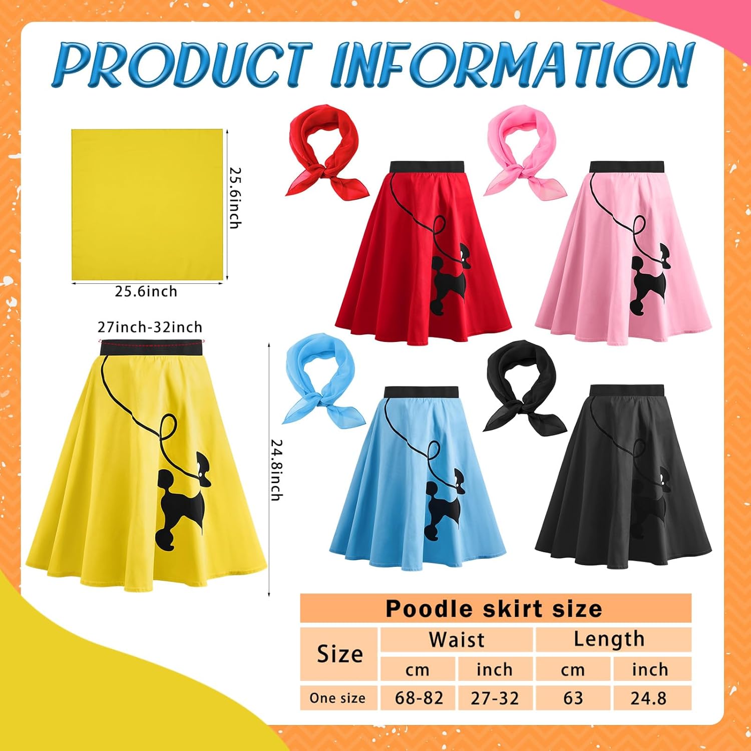 Features: With a range of colors to choose from, you can pick one of the neck scarves and skirts that match your favorite top or shoes. You can send our chiffon scarf and A line skirt to your girlfriend, wife, sister and daughter, to show your love to them. Specifications: Main material: Women's dog printed high waist poodle skirts: 95% polyester and 5% cotton Chiffon Scarfs: chiffon Color: multicolor Women's dog printed high waist poodle skirts: black, yellow, pink, light blue, red Chiffon scarfs: black, pink, sky blue, red, yellow Size: medium Women's dog printed high waist poodle skirts: about 27-32 inches/ 68-82 cm, 24.8 inches/ 63 cm in skirt length Package includes: 5 x Women's dog printed high waist poodle skirts 5 x Chiffon scarfs Notes: Manual measurement, please allow slight errors on size. The color may exist a slight difference due to different screen displays.