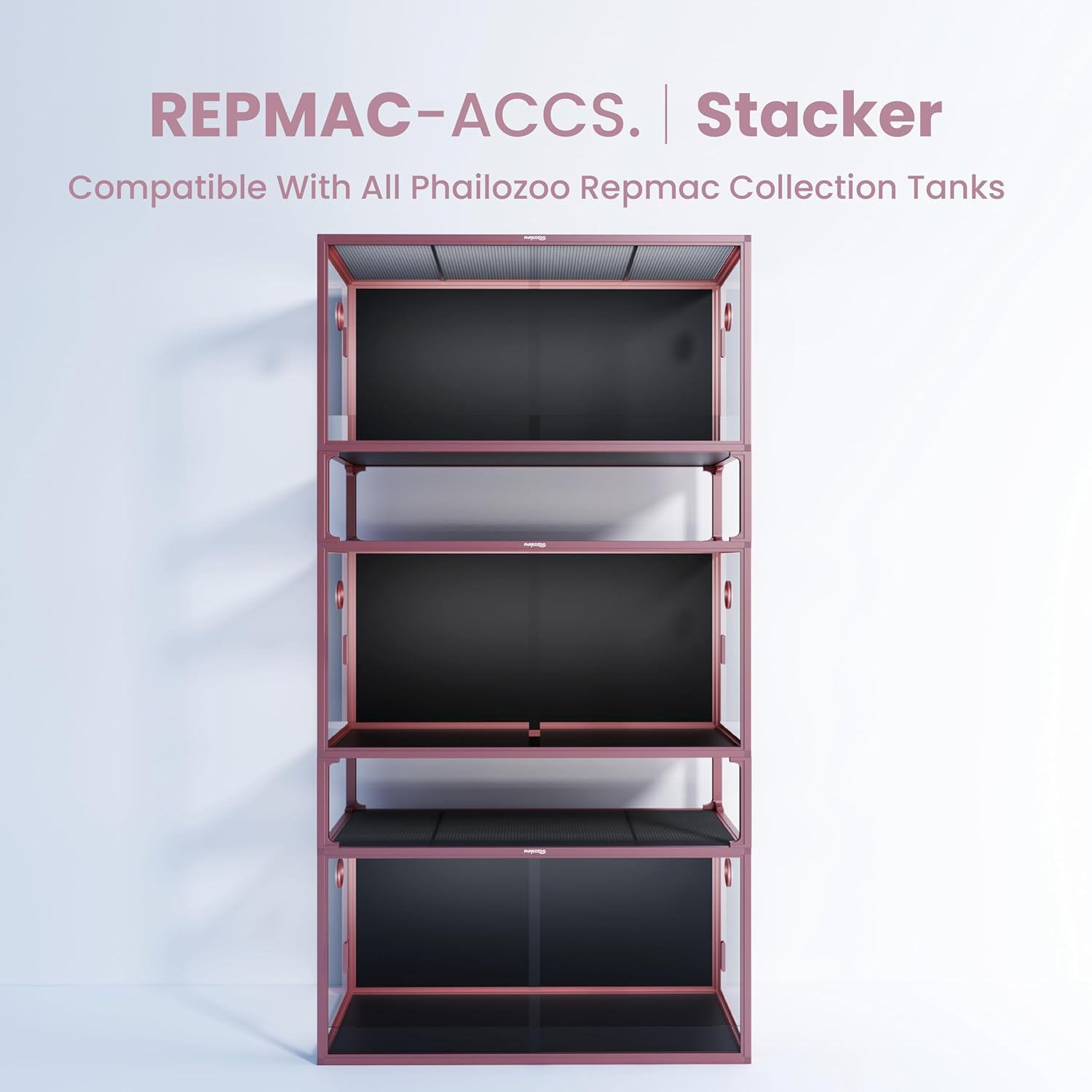 Phailozoo 50 gallon reptile tank with 10" reptile tank stackers in Bloom Pink