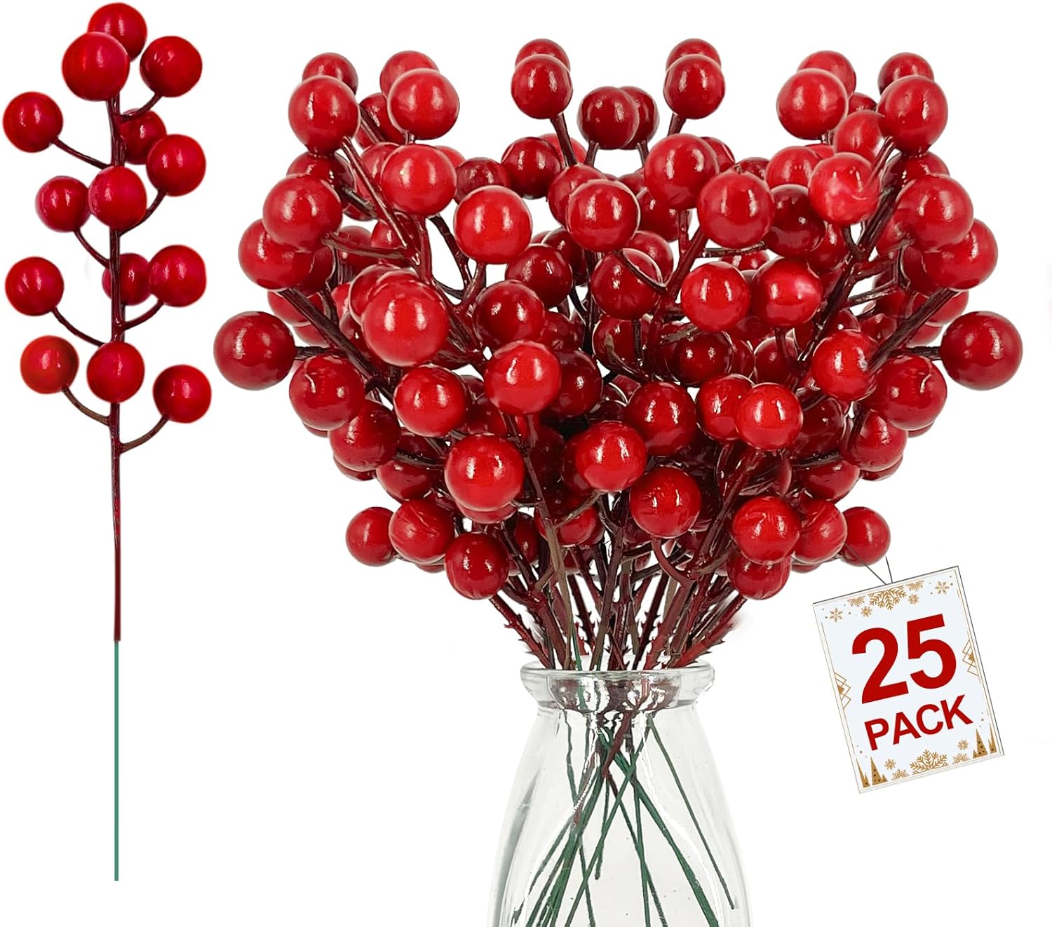 Pack of 50 Artificial Christmas Berry Branches Decorations, 8.3" Christmas Holly Berries Stems Branches for Xmas Tree Ornaments Vase Fillers DIY Holiday Home Indoor Outdoor Decor
