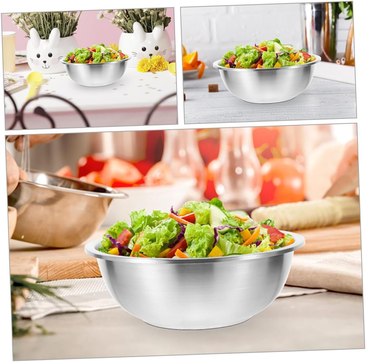 Package Include 1 x stainless mixing bowl 20cm 1 x stainless mixing bowl 22cm 1 x stainless mixing bowl 24cm 1 x stainless mixing bowl 26cm 1 x stainless mixing bowl 28cm Characteristics -Size:22.00X22.00X7.50cm/8.65X8.65X2.95in serving bowl -Size:20.00X20.00X7.00cm/7.86X7.86X2.75in large stainless mixing bowl -Color:Silver salad bowls large serving -Size:28.00X28.00X9.00cm/11.00X11.00X3.54in kitchen bowl -Size:24.00X24.00X8.00cm/9.43X9.43X3.14in egg mixing bowl -Size:26.00X26.00X8.50cm/10.22X10.22X3.34in kitchen mixing bowls -Material:Stainless stainless mixing bowl -Our mixing bowl is perfect for mixing salad, noodle, soup, mixing egg, rice, etc kitchen bowls. -Great for indoor and outdoor use with easy transportation, storage, and cleaning, a good kitchen helper mixing bowl kitchen. - A multi-functional stainless mixing bowl that meets your needs mixing bowl. - This mixing bowl can be used to egg or cream, salad, chicken or meat, mix ingredients bowls for kitchen. -Perfect for all your kitchen foods and looks great at the same time, large enough to hold food stainless mixing bowls.Goods Descriptionstainless mixing bowl The mixing basin is made of stainless , which has and functions.stainless bowls Stainless soup basin has a of uses.kitchen mixing bowls Take at this! Our stainless mixing basin is a for your kitchen.mixing bowl large Excellent material and fine craftsmanship, stainless bowl is sturdy and long time