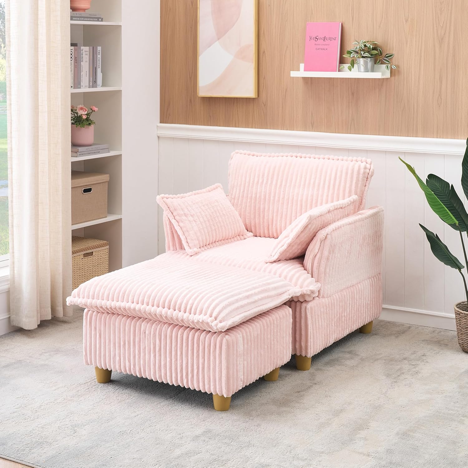 | Additional Features | 60" Single-Seat Corduroy Sofa, Comfortably Lying Couch, Retro Adaptable Lovseat Ottoman with Movable Footrest and Throw Pillows |
