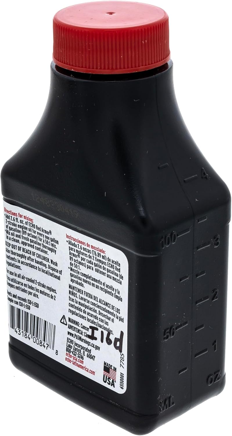 ECHO Red Armor Oil is a premium 2 stroke semi synthetic engine oil formulated with powerful detergents and anti oxidants to clean existing deposits, protect against future carbon build up, and promote longer engine life.With unique fuel stabilizers blended in, the fuel stays fresh for up to 2 years in a properly sealed container.JASO FD registered and ISO L EGD compliant.Red Armor cleans and protects to ensure optimum engine performance and prolonged engine life, leaving your equipment ready for the next challenge and running at peak performance