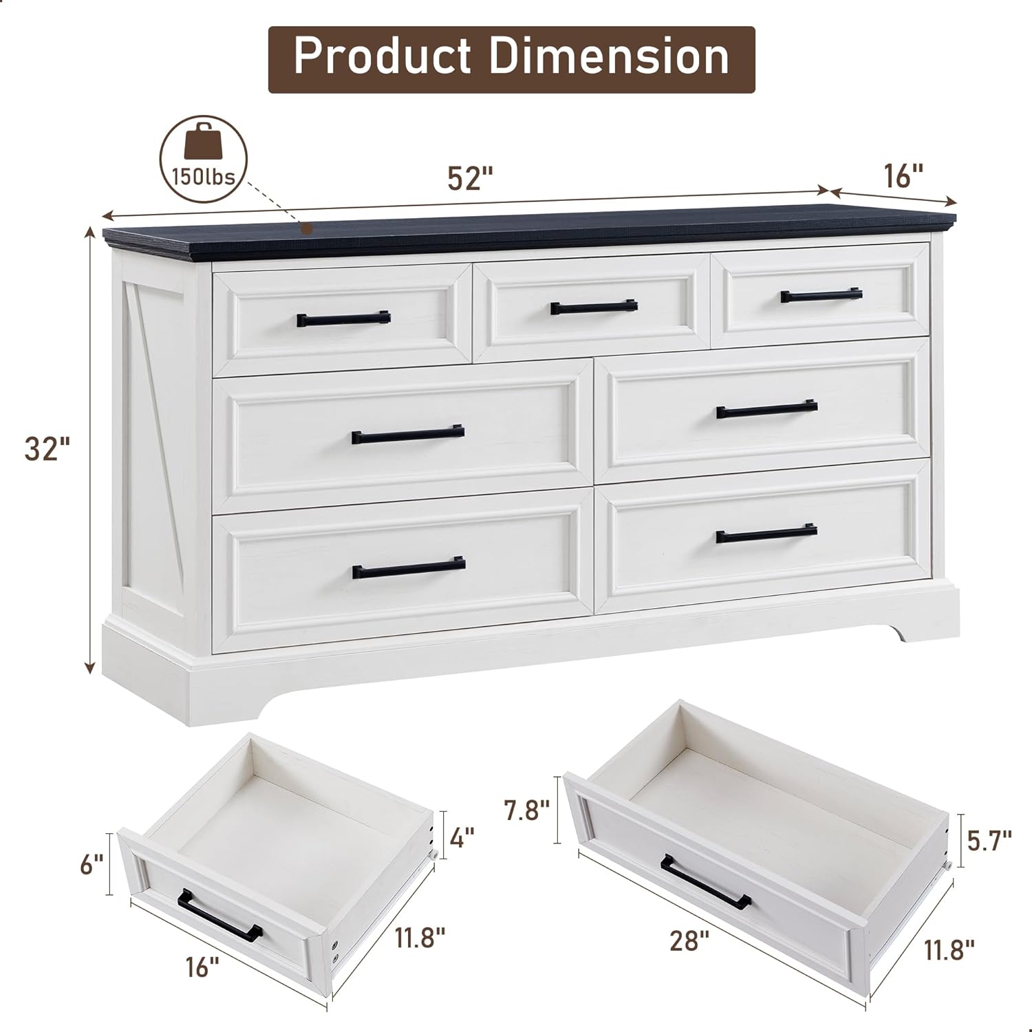 | Size | 16"D x 52"W x 32"H (7 Drawers) |