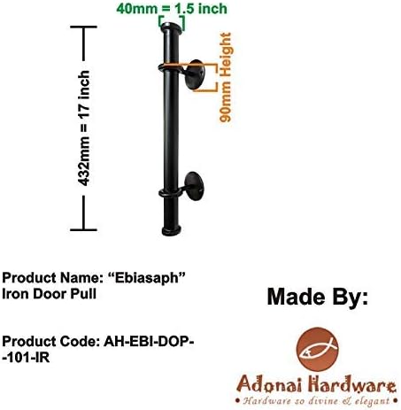 Adonai Hardware "Ebiasaph" Antique Iron Hand-Forged Door Pull- Oil Rubbed Black Living Finish