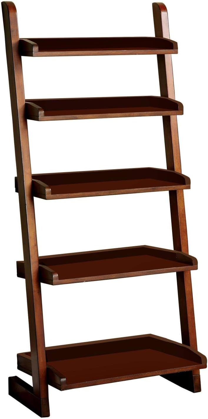 Antique Oak 1pc Ladder Shelf 5-Tier Shelf for Books Modern Style Living Room Display Shelf/Book Shelf