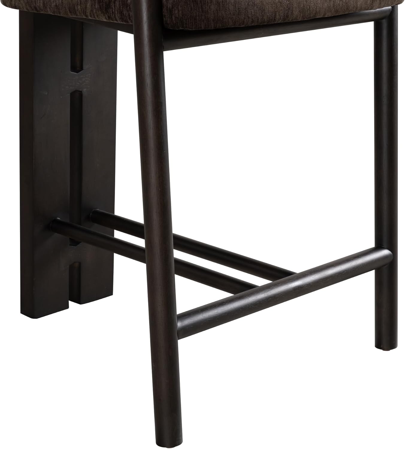 The Aaliyah Espresso Solid Wood Upholstered 26" Counter Height Barstool is a perfect blend of style, comfort, and durability, making it a standout addition to your kitchen, counter, or dining area. With a Brindle Brown upholstered seat and an espresso-finished solid wood frame, this barstool combines a modern aesthetic with traditional craftsmanship. The rectangular seat and low-back design provide a sleek, minimalist look, while the fiber-wrapped foam cushion ensures premium comfort for extended seating. The sturdy rubberwood construction enhances durability, while the espresso finish adds a warm and elegant touch to your decor. This barstool features a built-in armrest for extra support, making it ideal for casual dining or entertaining guests. Designed with practicality in mind, the plastic glides on the legs protect your flooring, ensuring long-lasting functionality. The Aaliyah Barstool comes with a 1-year warranty covering fabric and frames. No assembly is required, making it a hassle-free addition to your home. This product includes three barstools.