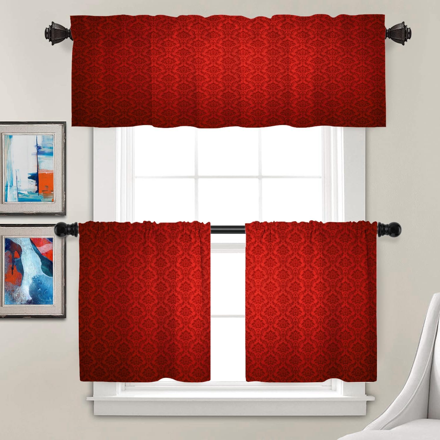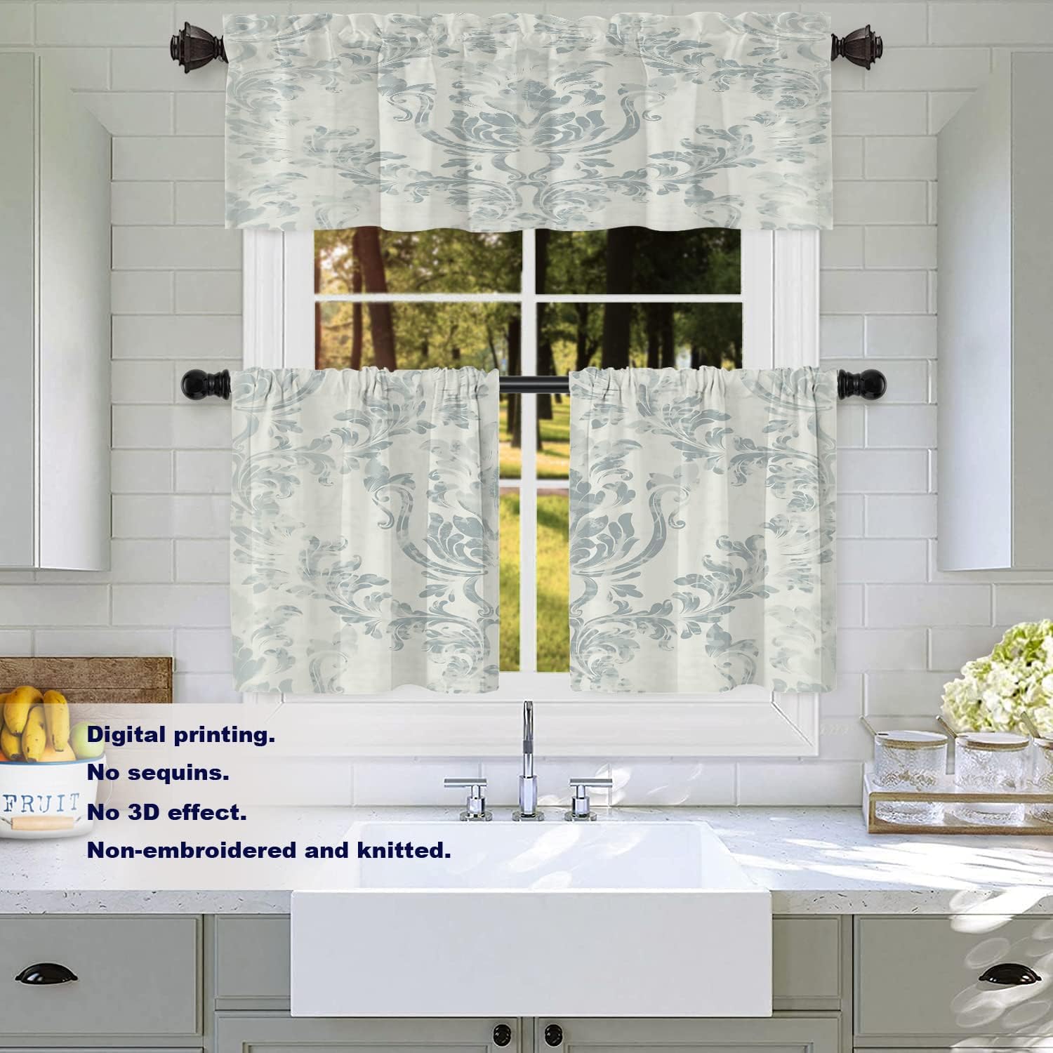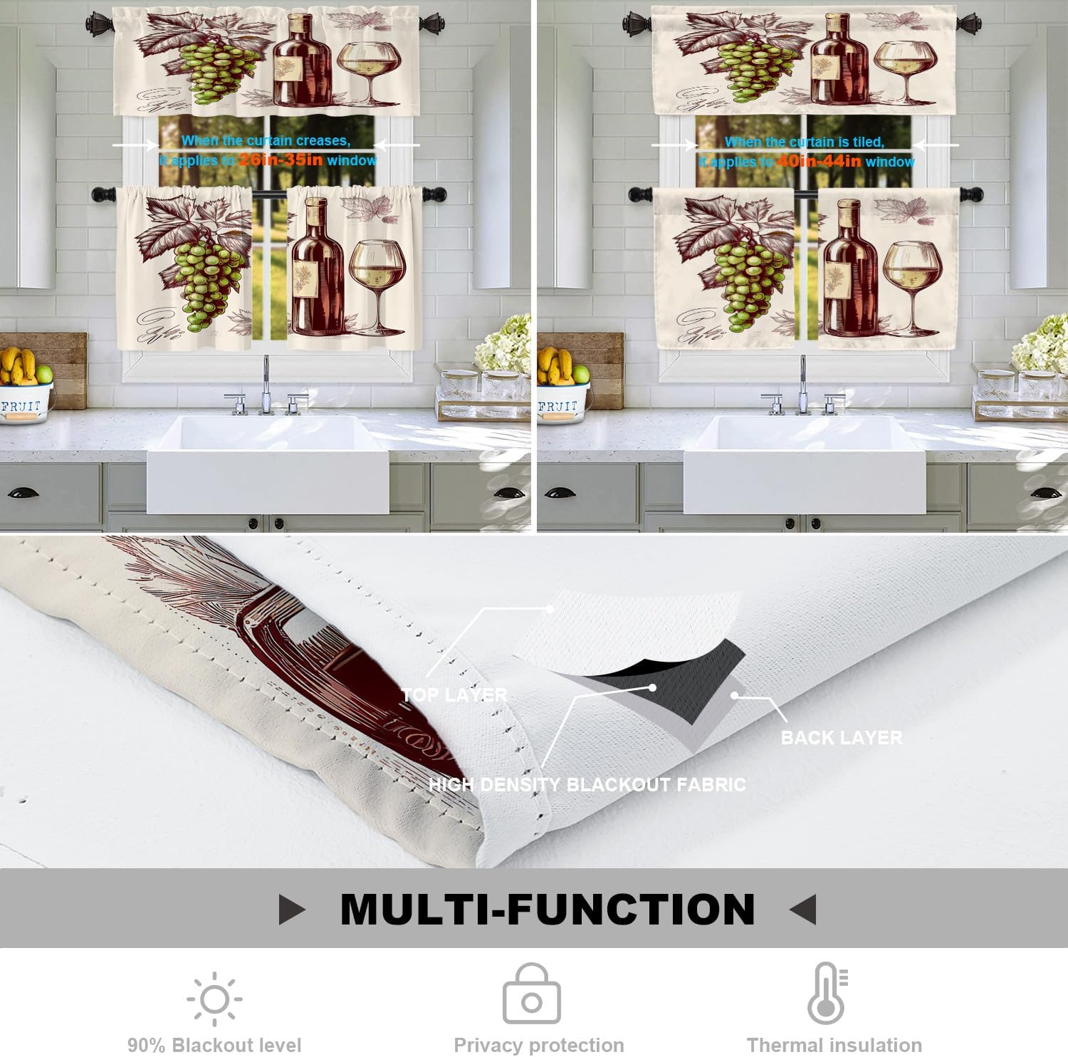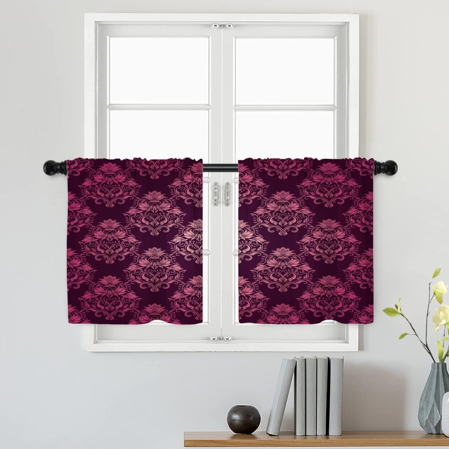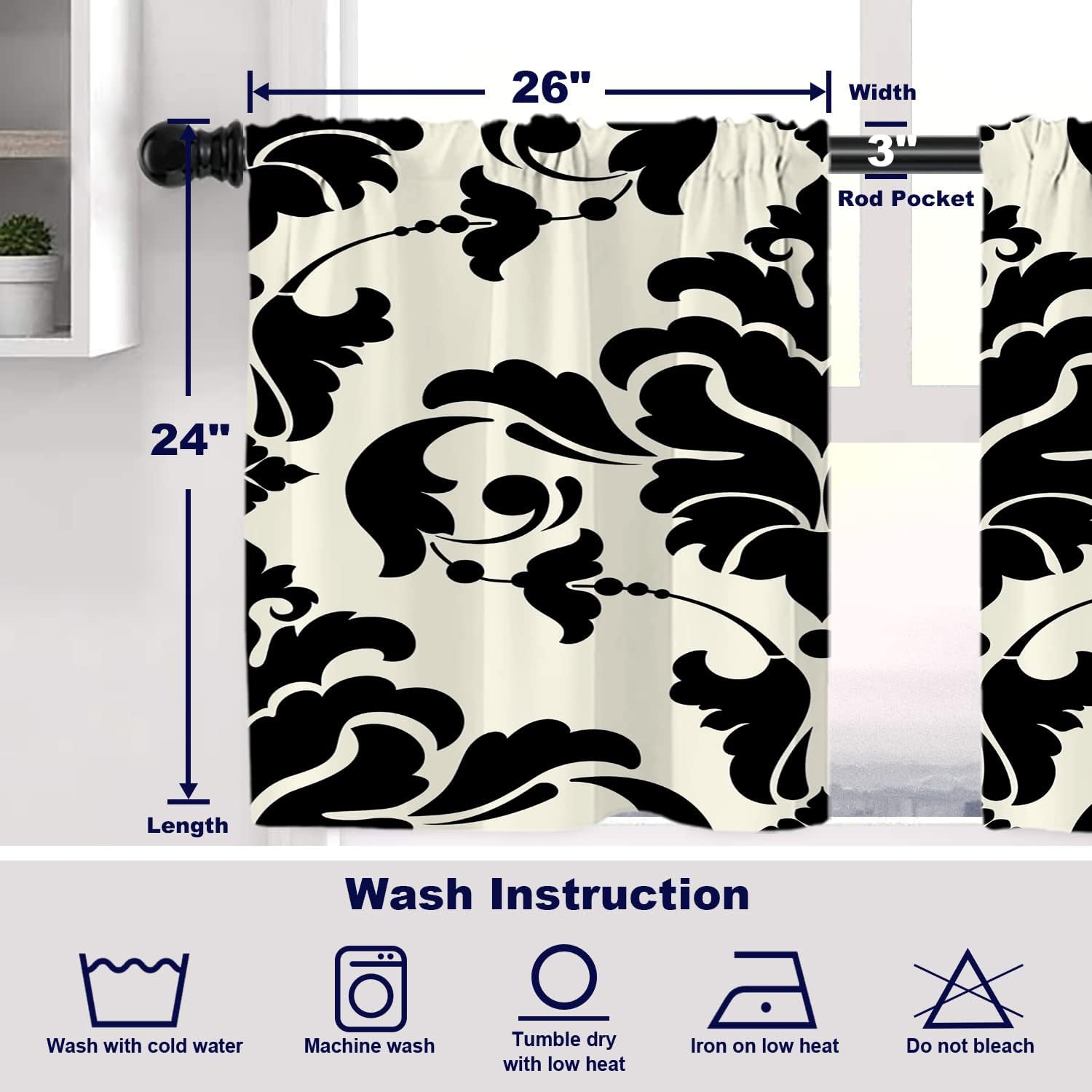 Batmerry valanceGreat picture,vivid colors and characteristic pattern design will make your room warm, pretty and unique look.Quality Material:High quality polyester,its softness makes curtains more exquisite.This curtain valance will not look very heavy, the wind can gently blow yarn, in winter can also penetrate the sun, very warm, even in summer can also add a layer of curtains to block the strong sun.Size:52x18 inch set of 1;52x18 inch set of 2 ; 52x16 inch set of 2.including 2 inch header and 3 inch rod pocket.40-44 inch long windows are suitable for decoration after the curtain is straightened, and 26-35 inch long windows are suitable for decoration after the curtain is pleatedMultiple Functions:These sheer curtain panels are suitable for kitchen, cafe room, bathroom, laundry room & studio etc.They can hang alone or match with other curtains.Easy Care:Machine washable for easy care, use only non-chlorine bleach when needed, tumble dry low and warm iron as needed.Warm Tips: Measure your pole and window size before you choosing curtains.Due to manual measurement, please kindly allow 1-2 cm discrepancy.Quality Guarantee:If you have any issue upon receiving the item, please contact us immediately.We will respond within 24 hours and make sure your issue is well taken care of.