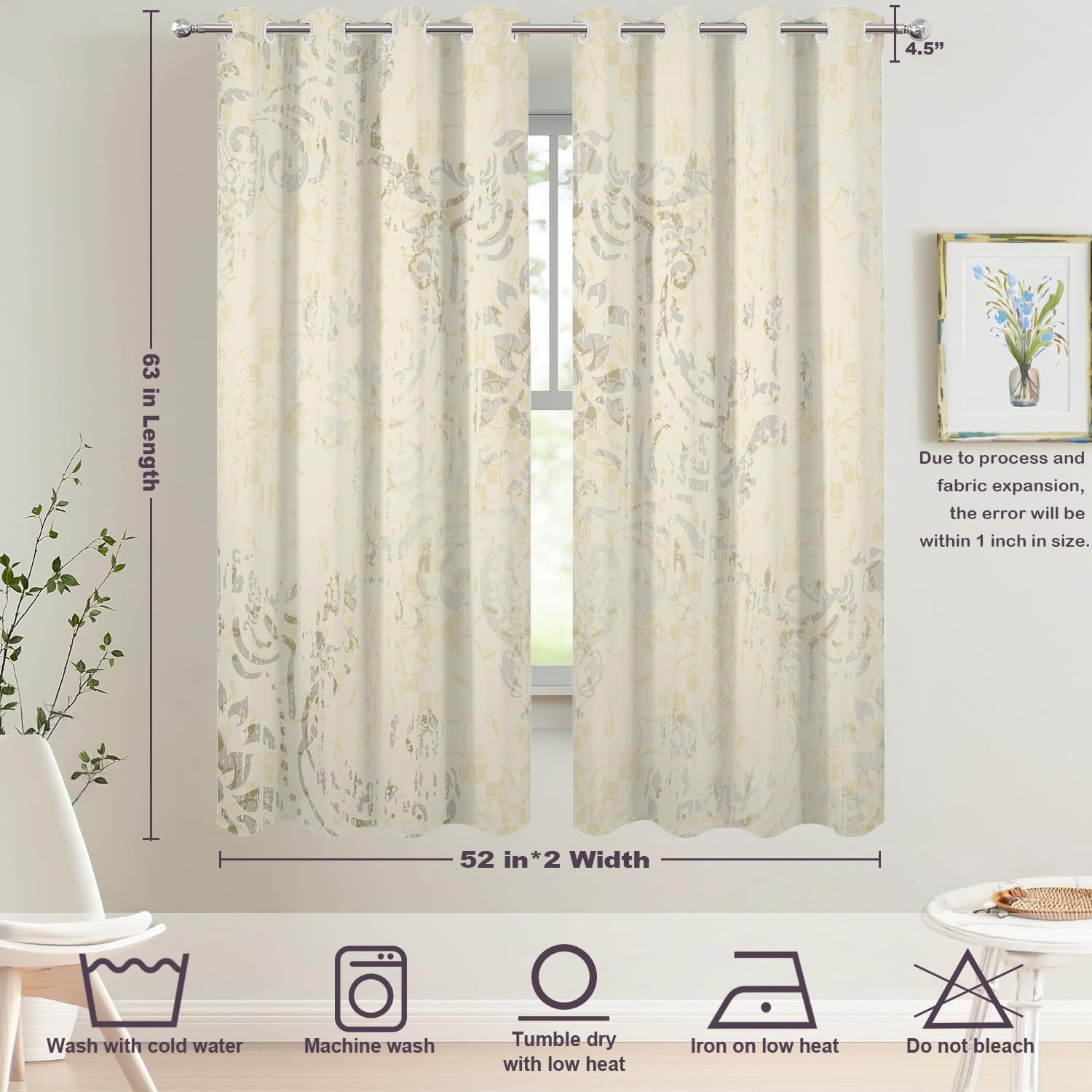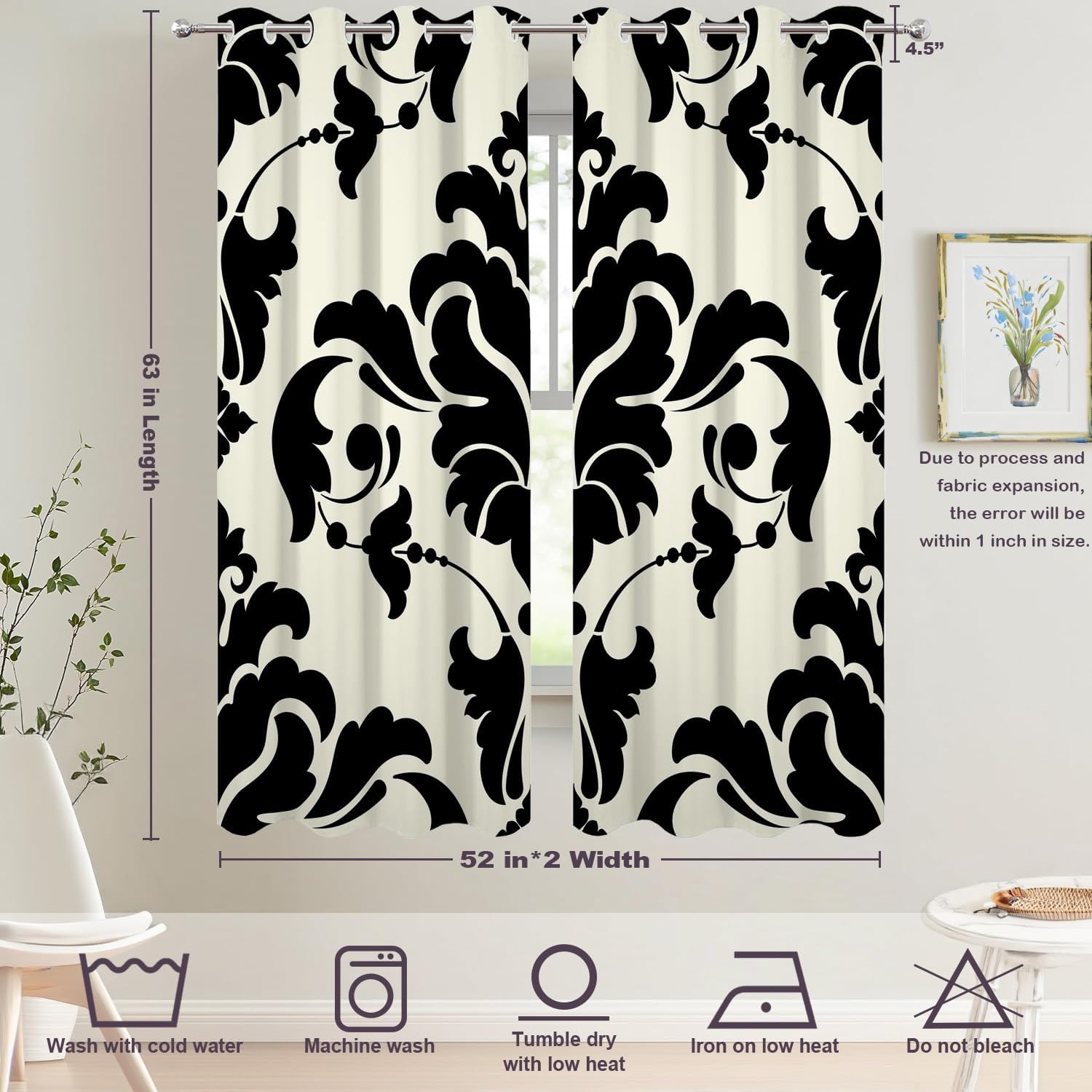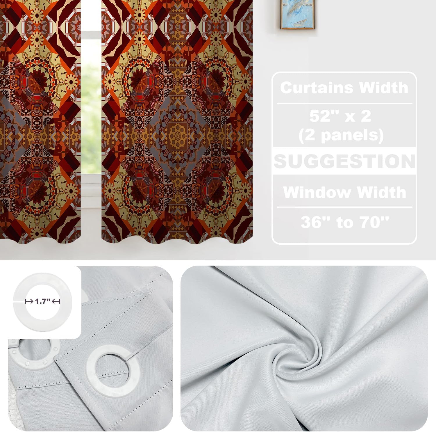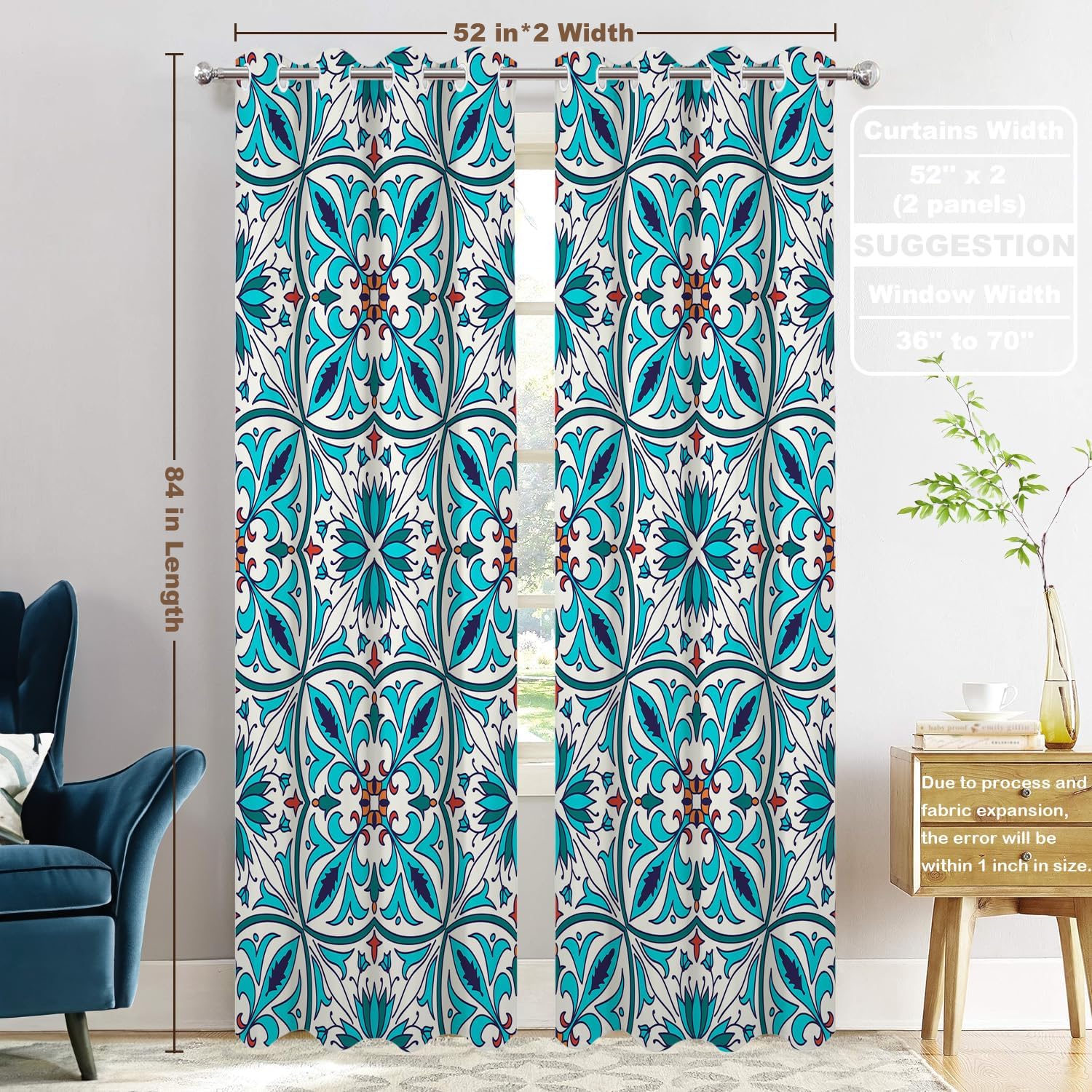 Batmerry valanceGreat picture,vivid colors and characteristic pattern design will make your room warm, pretty and unique look.Quality Material:High quality polyester,its softness makes curtains more exquisite.This curtain valance will not look very heavy, the wind can gently blow yarn, in winter can also penetrate the sun, very warm, even in summer can also add a layer of curtains to block the strong sun.Size:52x18 inch set of 1;52x18 inch set of 2 ; 52x16 inch set of 2.including 2 inch header and 3 inch rod pocket.40-44 inch long windows are suitable for decoration after the curtain is straightened, and 26-35 inch long windows are suitable for decoration after the curtain is pleatedMultiple Functions:These sheer curtain panels are suitable for kitchen, cafe room, bathroom, laundry room & studio etc.They can hang alone or match with other curtains.Easy Care:Machine washable for easy care, use only non-chlorine bleach when needed, tumble dry low and warm iron as needed.Warm Tips: Measure your pole and window size before you choosing curtains.Due to manual measurement, please kindly allow 1-2 cm discrepancy.Quality Guarantee:If you have any issue upon receiving the item, please contact us immediately.We will respond within 24 hours and make sure your issue is well taken care of.