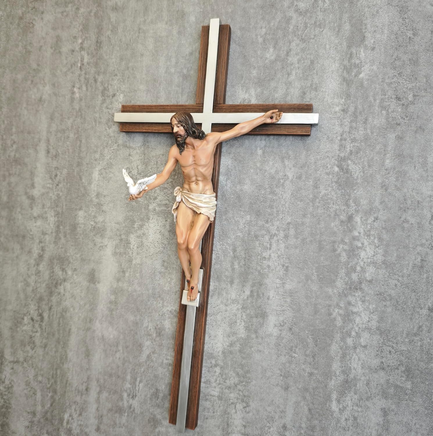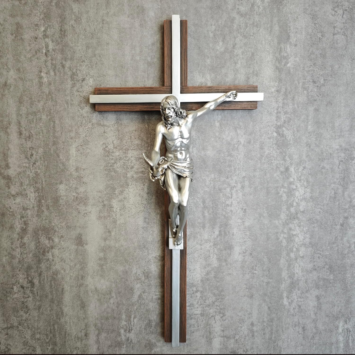 • 【SILVER COLOR IN 14.3 INCH HEIGHT】 make this Jesus cross versatile for indoor display. whether in a living room, church, office or study. it will bring elegance and inspiration to any space. Furthermore, it can be combined with other BC Catholic sculptures for a meaningful showcase of faith.