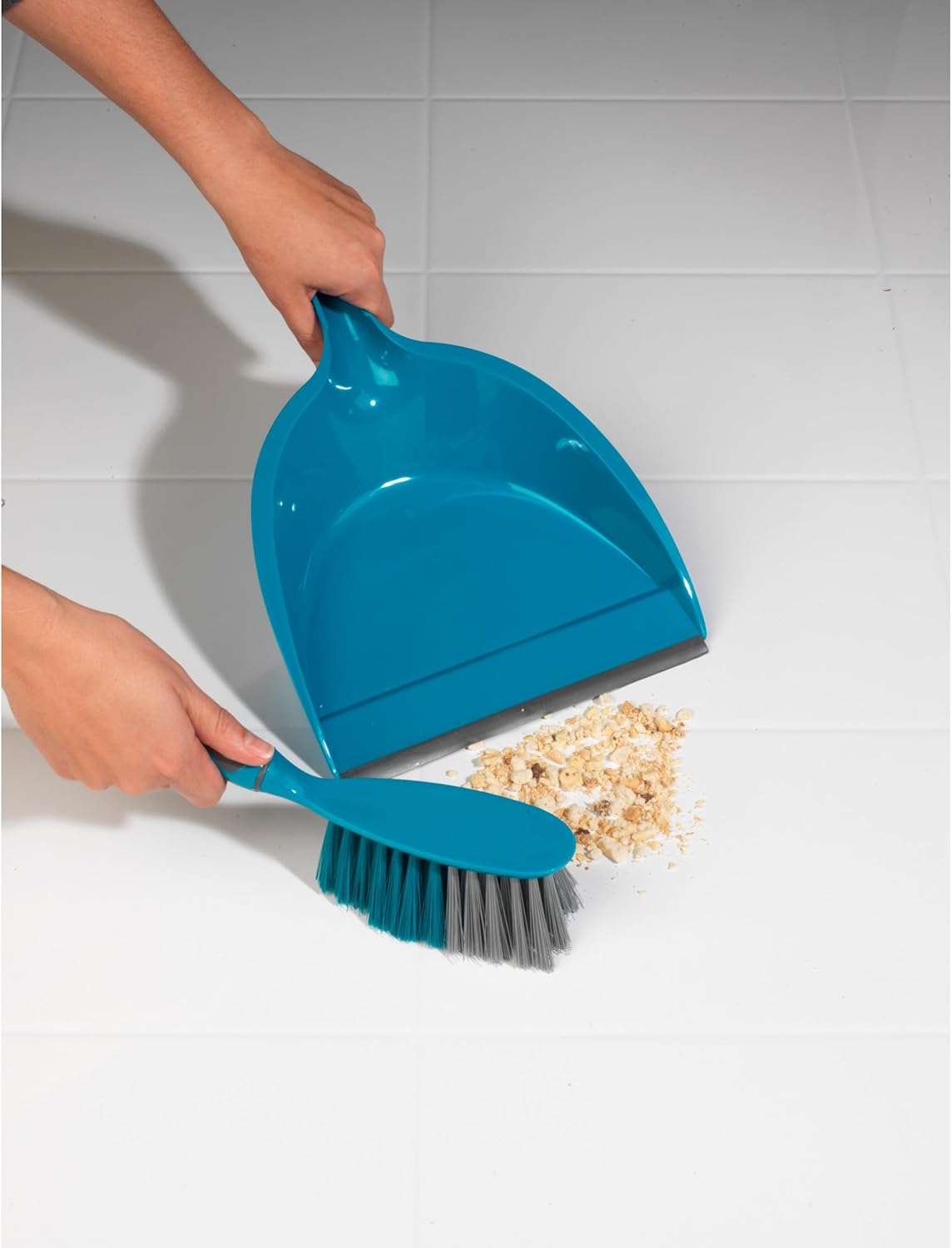 Keep your home spotless with this fantastic Turquoise Beldray five piece cleaning set consisting of a steel broom, dustpan and brush, scrubbing brush and a dishwashing brush. Made from plastic with soft grip handles, the tough brush bristles provide effective cleaning without being abrasive so you can achieve a truly thorough clean throughout the whole house.