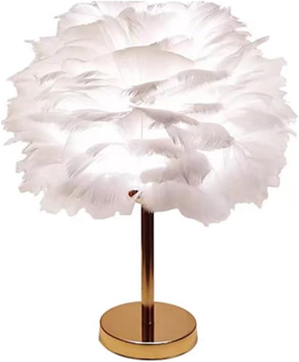 Feature: 1. Feather Lampshade: Our table lamp is handcrafted from nice feathers and comes with a soft light effect to make your peaceful nights more comfortable and restful. 2. Elegant and Beautiful: The overall look of this feather table lamp is very simple and beautiful, which can be very well integrated into the decoration of your bedroom, very elegant. 3. Plating Process: The lamp body is treated with electroplating process, full of texture, and the metal material base is weighted design, polished by exquisite craftsmanship, sturdy and durable. 4. Button Design: This feather table lamp is with a button switch, the operation is very simple, very labor saving, so that you can keep a great mood in the process of use. 5. Wide Usage: Of course, our feather table lamp is not just applied in the bedroom, you can place it in any room of your home, whether it is the living room, game room, study, this feather table lamp can enrich the corresponding room. Specification: Item Type: Feather Table Lamp Material: Metal, feather Weight: Approx. 1000g/35oz Package List: 1 x Feather Table Lamp