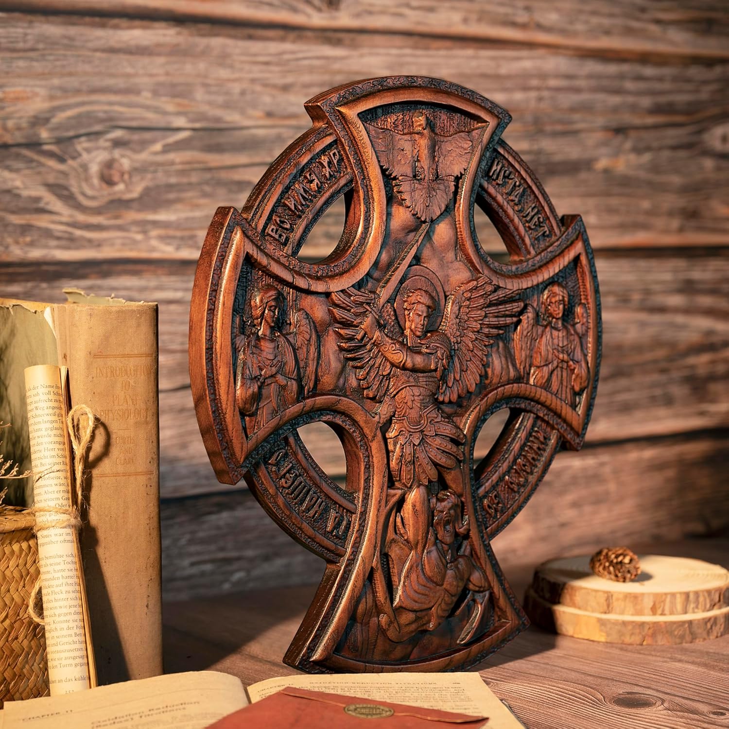 BGCOPPER: A brand that focuses on making woodcarving crafts.May love and peace be with us.Package St Michael Cross*1, Hook *1Love and HopeThis wooden crucifix wall is a symbol of Christian faith, symbolizing Jesus' crucifixion, suffering and death on the cross, redeeming sinners, and representing love and redemption.Material The orthodox wall cross is made of European Beech Wood. It has clear grain, smooth color, hand polished, and hand-painted, making its’ appearance of the cross more elegant.Easy to install and removeThe wooden crucifix wall cross has a metal hanger on the back and can be hung on the wall in your living room, bedroom, church, or displayed on a desk or table.Great GiftCan be given as a gift to celebrate baptisms, first communion, confirmations, family blessings, weddings, Christmas, Easter, etc.A Good After-Sales ServiceIf you have any questions after purchasing our orthodox crucifix wall cross, please contact us as soon as possible, and we will serve you wholeheartedly.