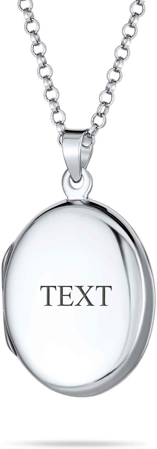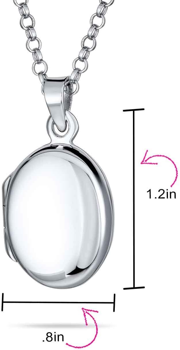 Bling Jewelry Simple Plain Dome Oval Circle Traditional Keepsake .925 Silver Necklace Pendant Personalized Engrave Photo Locket for Women Teens Holds Photos Pictures Small Medium Large