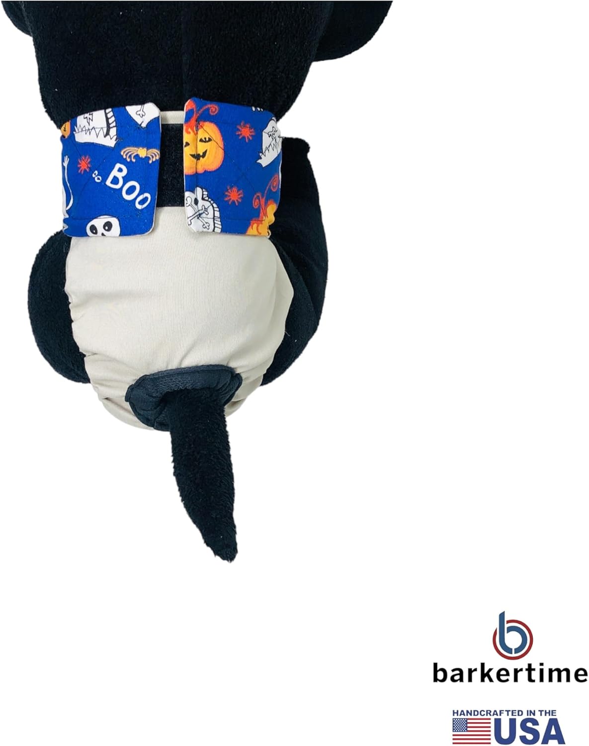 | Model Name | Blue Halloween Boo Pumpkin on Frosty Cream Dog Diaper, XS, With Tail Hole |