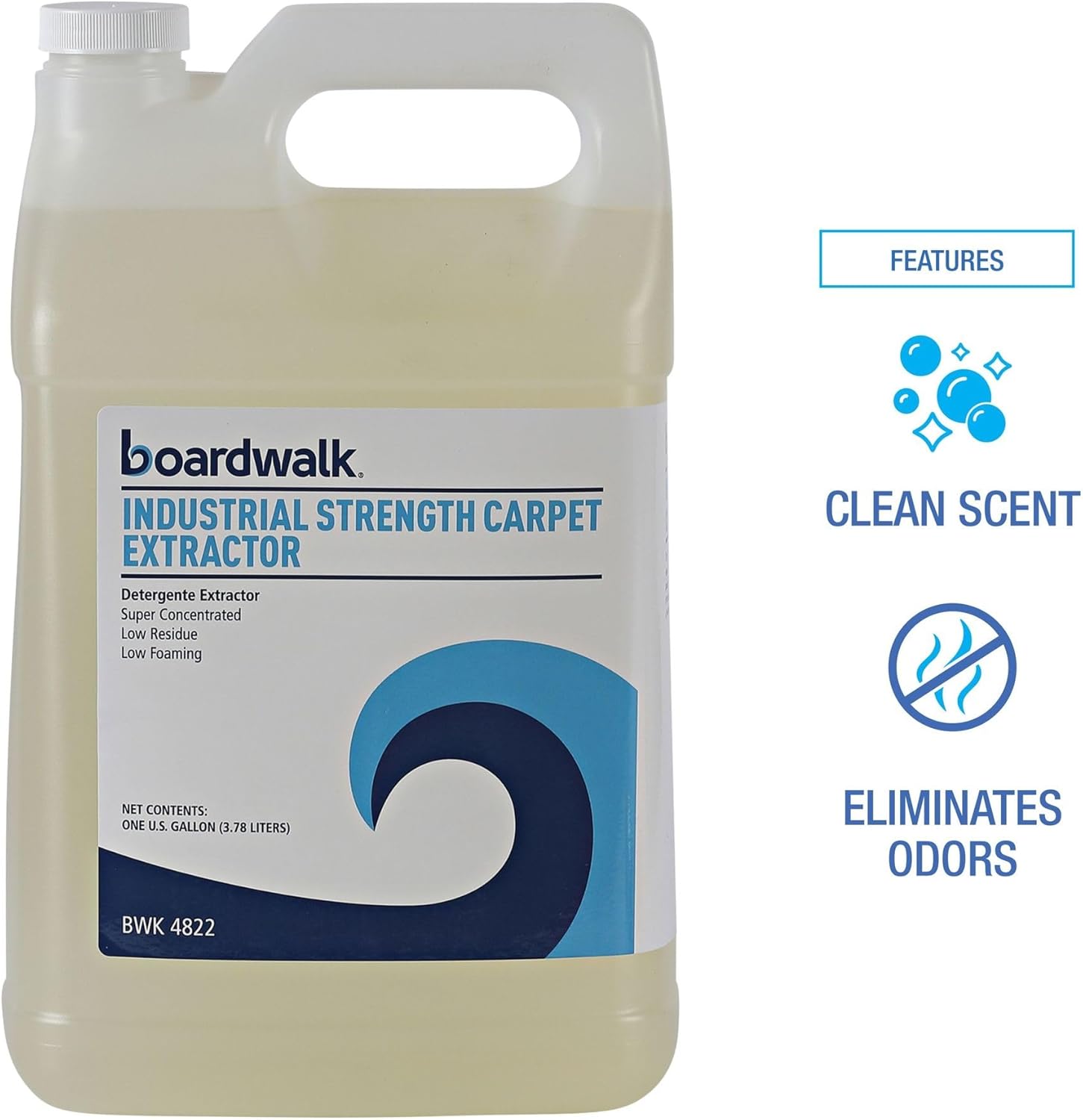 Remove dirt and stains from highly trafficked carpet with Boardwalk® carpet extractor. The industrial strength, concentrated carpet cleaner that is designed to be used in extraction cleaners and steam cleaner machines. The heavily concentrated product penetrates carpet and loosens soils quickly so that they can be vacuumed immediately into the extraction machine. Removes odors and freshens with a clean scent. Recommended dilution: preset (1:256).