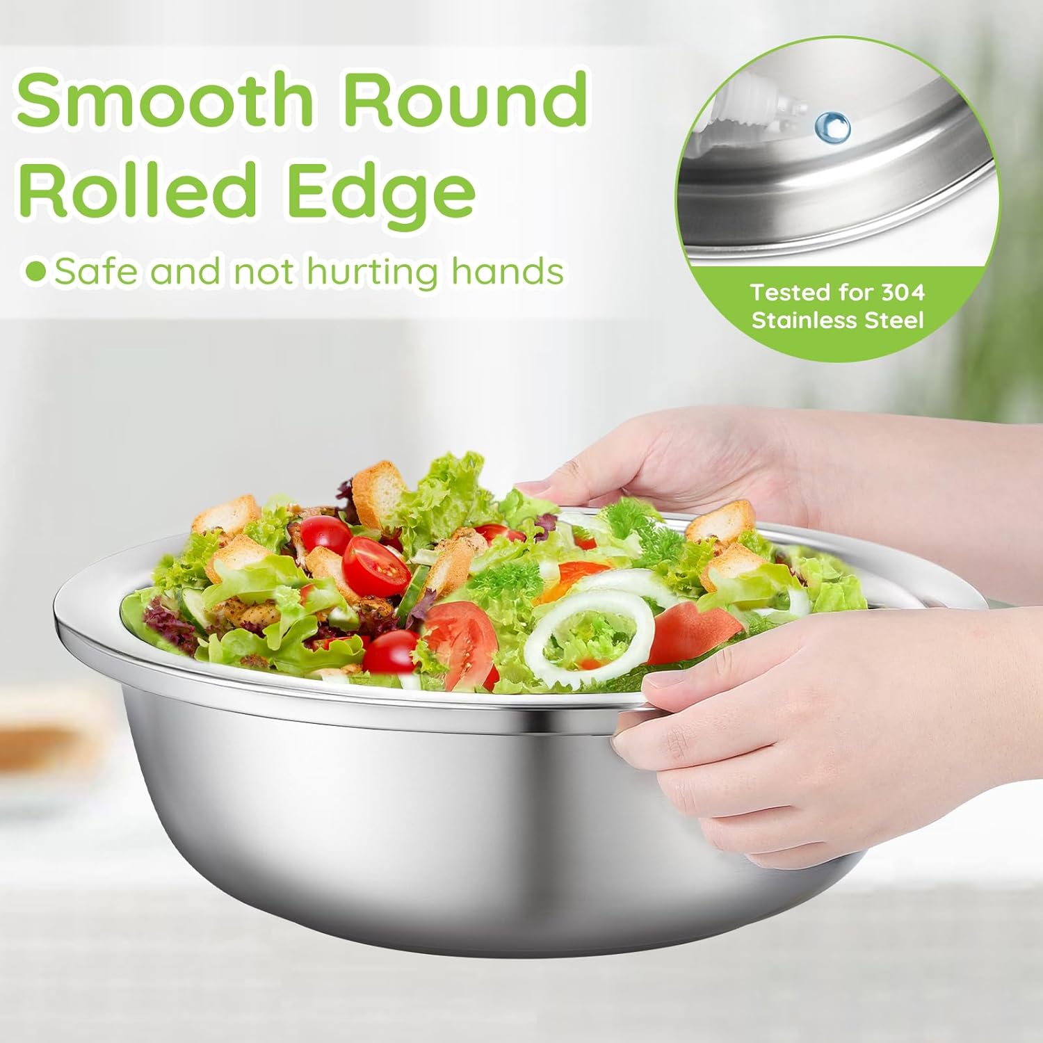 Offiper Bundle of 4 Pack 7" SUS304 Lightweight Metal Mixing Bowls and 4 Pack 13.4" 7.4QT SUS304 Large Heavy Duty Mixing Bowls
