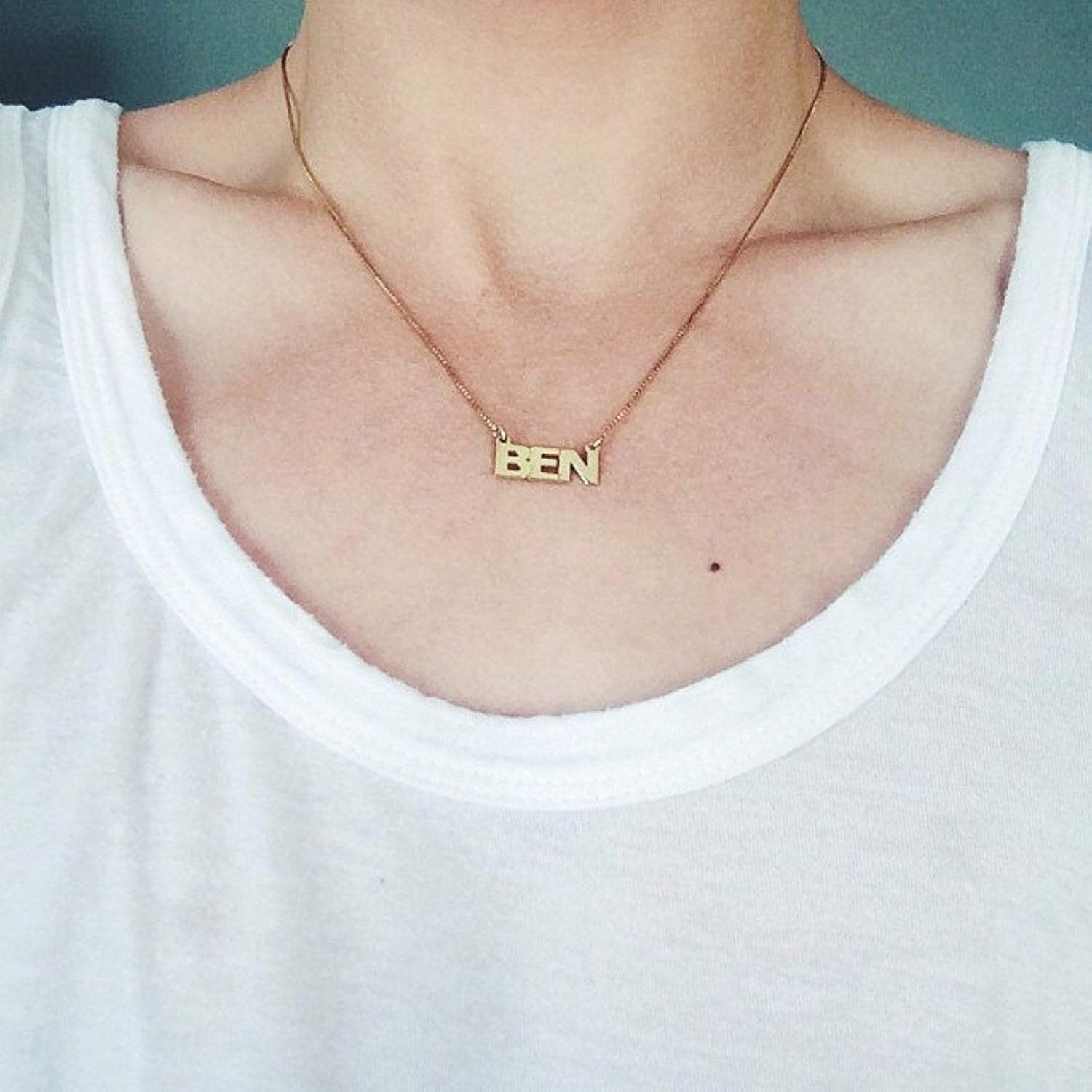 Capital Letters Personalized Name Necklace โ Sterling Silver & Gold Block Nameplate โ Women's Custom Jewelry Gift โ Perfect for Her Experience a blend of elegance and identity with our Capital Letters Name Necklace. Customized in a distinct block font, this necklace stands out as a personal statement, marrying the richness of sterling silver with the luminance of gold. Whether you're treating yourself or searching for the perfect gift, our necklace tells a story that's uniquely yours. Choose between sterling silver, gold, or rose gold finishes to perfectly complement any style or occasion.