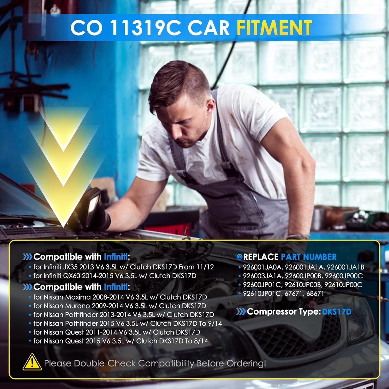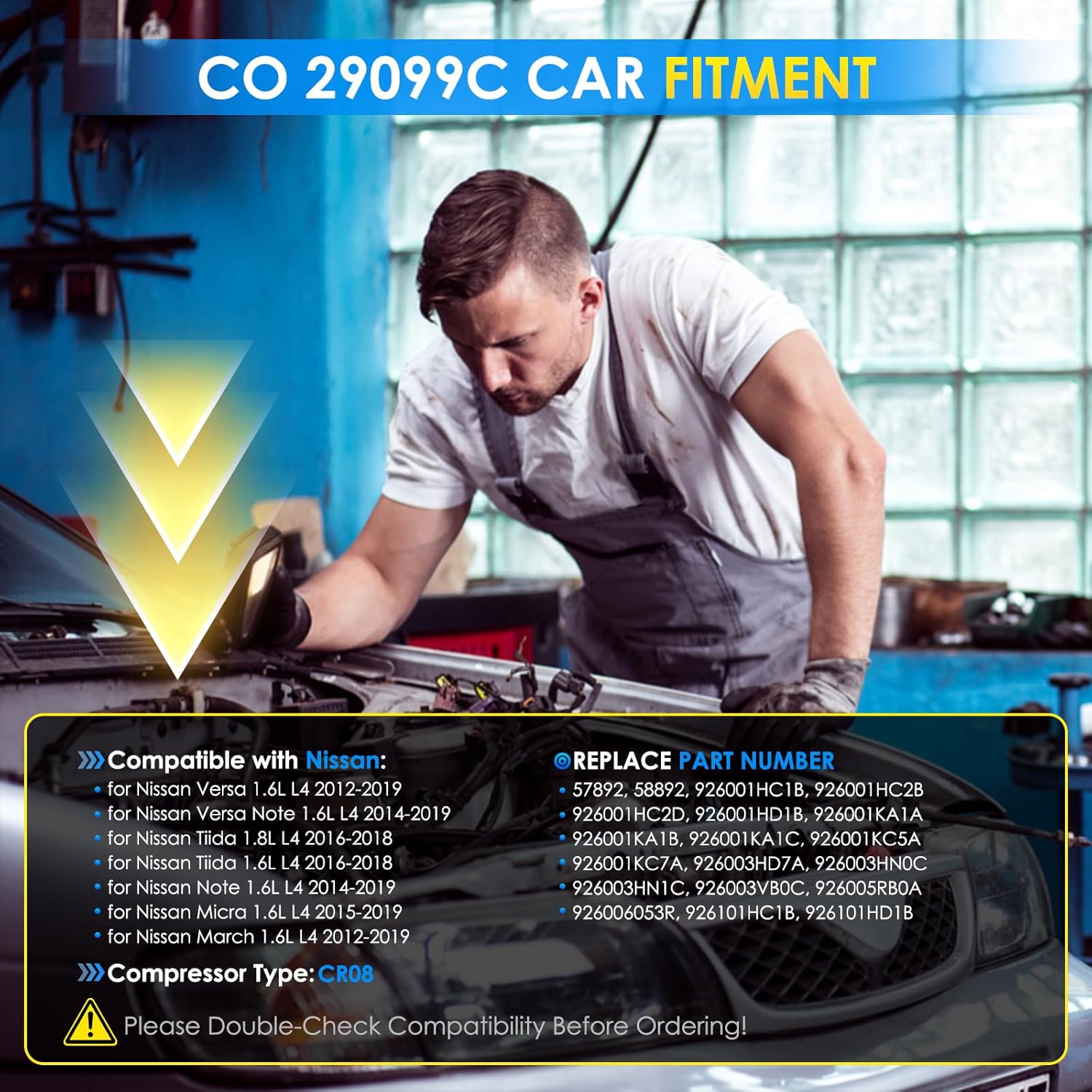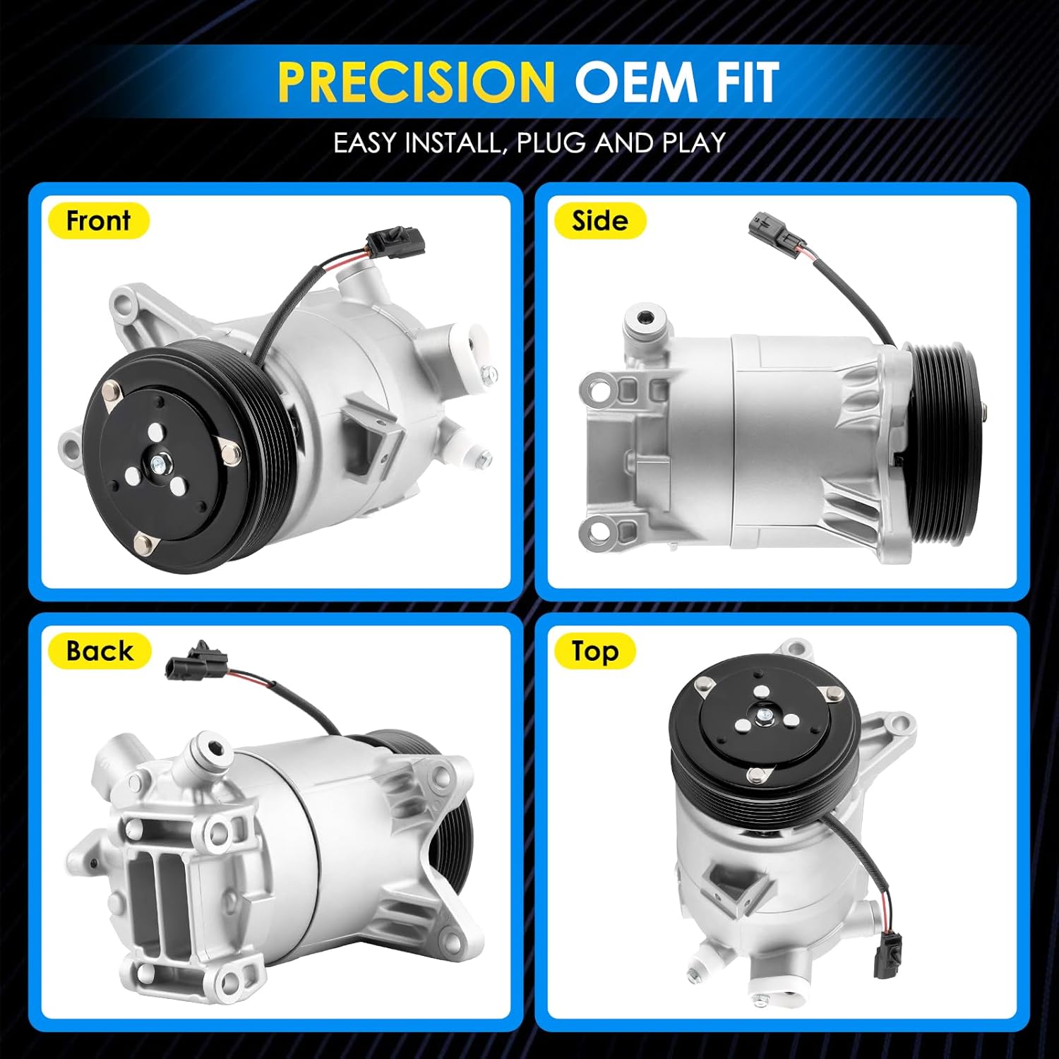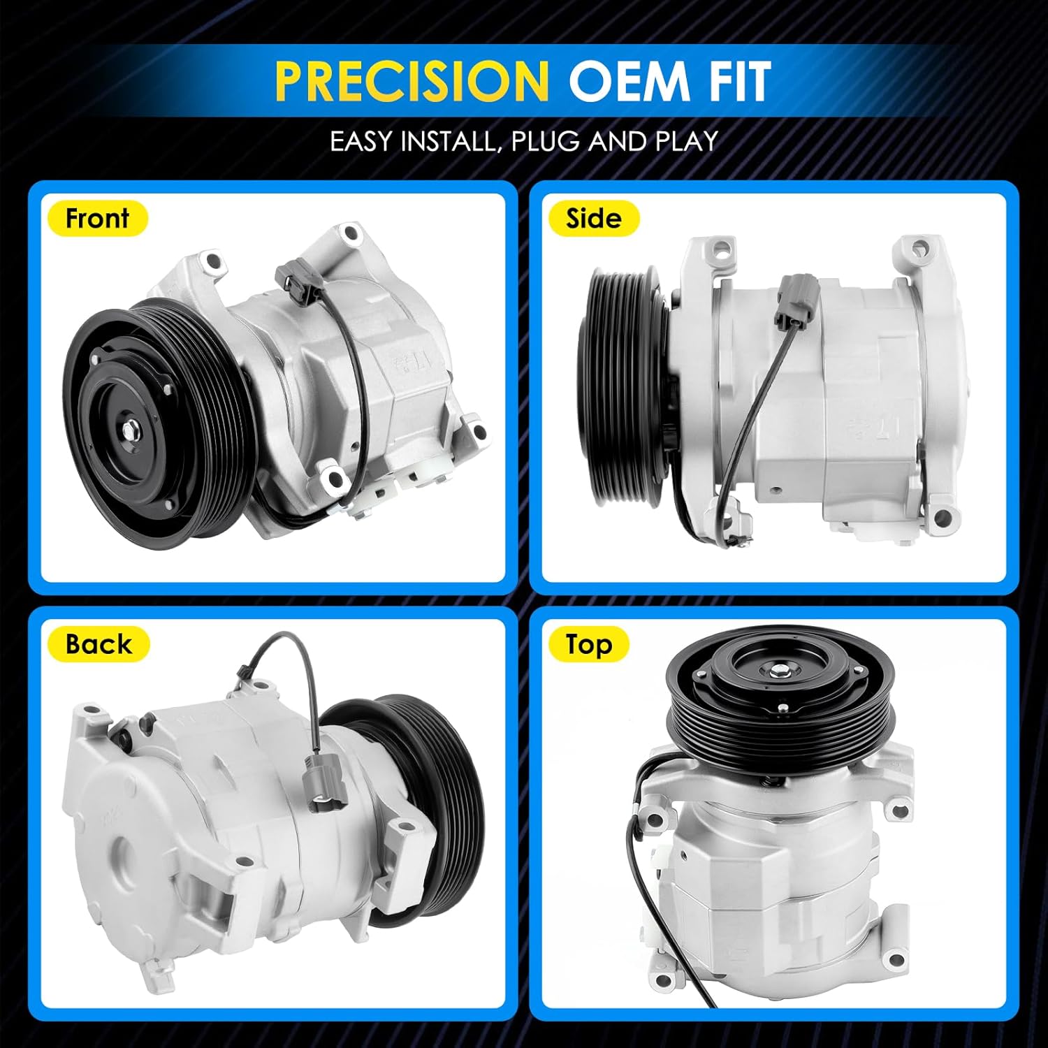 CO 11270C A/C Compressor – High-Performance, Durable, and Reliable Replacement PartPart Number:CO 11270C, 8831006390, 883100R014, 471-0631, 471-1631, 158380,447260-3650, 447260-3651, 4472603650, 4472603651, 8831033290158380 Car A/C Compressor Specification:Compressor Type: 6SEU16CA/C Compressor Oil Type: PAG 46A/C Compressor Pulley Diameter (mm): 107A/C Compressor Pulley Grooves: 4Suction Port Diameter (mm): 18Material: Aluminum AlloyPackage: 1× AC compressor and clutch.Compatibility:for Toyota Camry 2009-2009 2.4Lfor Toyota Camry 2010-2011 2.5L*Please make sure the product is suitable for your car model.High-Quality A/C Compressor Features:Premium Auto Parts A/C Compressor: Made with high-grade aluminum materials for long-lasting performance. Engineered with precision CNC-machined components for enhanced compression efficiency, reduced noise, and improved cooling performance, helping to extend the compressor’s service life. Reliable Performance: Designed to deliver consistent refrigerant circulation and optimal cooling capacity under various driving conditions, even in extreme heat. This helps maintain stable cabin temperatures for maximum comfort.OEM-Quality Replacement: All critical mounting surfaces, dimensions, and contact points are carefully measured to guarantee a perfect fit, making installation easier. Air compressor are 100% tested to OEM standards and lubricated with high-quality grease to ensure durability and smooth operation.Energy Efficiency and Smooth Operation: Engineered to reduce power consumption, this A/C compressor operates efficiently, minimizing strain on your vehicle’s engine while ensuring quiet and smooth performance.Enhanced Durability and Rigorous Testing: This compressor undergoes accelerated cycle testing and extensive durability checks to withstand the demands of daily driving and challenging conditions. Its robust design reduces the risk of leaks and premature wear.Improved Cooling System Efficiency: By optimizing refrigerant compression and flow, the compressor enhances the overall efficiency of the air conditioning system, helping to cool the cabin more quickly and maintain performance over time.Vibration and Noise Reduction: Specially designed internal components help dampen vibrations and reduce operational noise, providing a quieter and more enjoyable driving experience.Leak-Resistant Seals: Equipped with advanced, high-quality seals that minimize the risk of refrigerant leaks, ensuring consistent and long-lasting cooling performance.Note:Before making a auto parts a/c compressor purchase, kindly verify that the automotive replacement air conditioning compressors is compatible with your vehicle's make, model, and year.It is recommended to have the air conditioner compressor replacement installed by a qualified automotive technician. Proper installation ensures optimal functionality and minimizes the risk of damage to your vehicle.Please ensure that the air conditioning system is clean before installation. Failure to do so may result in operational obstructions, potentially causing the compressor temperature to rise excessively and leading to melting of the clutch belt.If you encounter any issues or have concerns about the air conditioner compressor for car's performance, please reach out to our customer support team immediately.