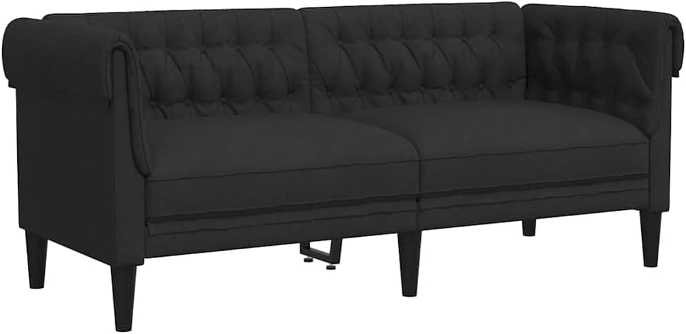 This Modern 2-Seater Chesterfield Sofa perfectly mixes style and comfort, making it a fab addition to any living space. With its elegant rolled arms and deep button tufting, this sofa doesn’t just look good; it serves as a centerpiece in your living room or office, giving off a smart and sophisticated vibe. The cozy build and breathable fabric mean you can kick back, chat, or binge-watch your fave shows in complete comfort for ages.Classic rolled arms add sophistication to any spot, ensuring it stands out wherever it's placed.Tufted cushions not only look great but also provide comfy lounging for reading or relaxing.Made from high-quality polyester fabric for breathability, keeping things comfy for long sittings.Solid wood frame ensures durability and stability, supporting a max weight capacity of 485 lbs.Great for different spaces like living rooms and offices, encouraging relaxed chats or chill moments.Colour: Black Shape: RectangularMaterial: Farbic PolyesterFinish: Matte Indoor/Outdoor: Indoor OnlyCover Included: NoRoom: Living RoomCapacity: 485 lbsMaximum Number of People: 2Maximum Weight: 220 kgDimensions: 74.5 x 182.5 x 74.5 cm (W x L x H)Leg Height: 16 cmWeight: 26 kgSeat Depth: 59 cmSeating Capacity: 2Swings: NoDelivery Contains: Sofa parts, assembly instructionsAssembly Required: YesRecommended Number of People for Assembly: 2SKU: 372549