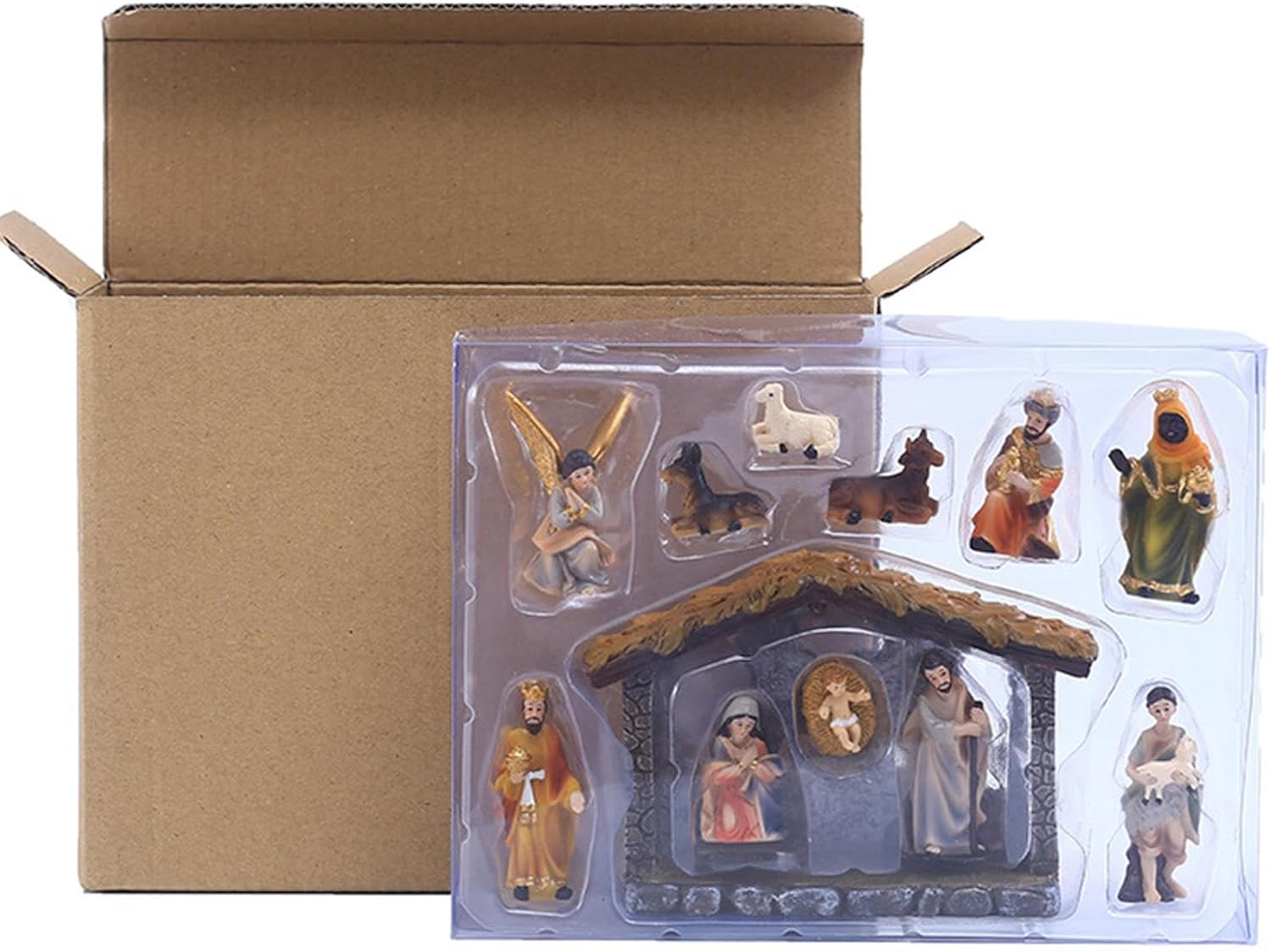 Description:The Tabletop Nativity Statue Ornament makes it the perfect addition to your home Christmas decorations. Crafted in realistic detail, the collections are designed to capture the joy of angels as the good news of the birth of Christ. These nativity sets are made of high-quality hand painted cast resin making them even more collectible.Specification:Name: Christmas Manger Nativity SetWeight: about 320gMaterial: ResinSize: as shownPacking list:Birth of Jesus ornaments*12Note:1. Due to the different display and lighting effects, the actual color of the product may be slightly different from the color shown in the picture. Thanks!2. Due to manual measurement, a measurement deviation of 1-3cm is allowed.