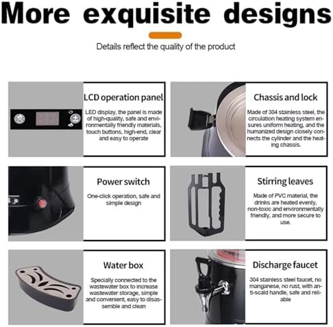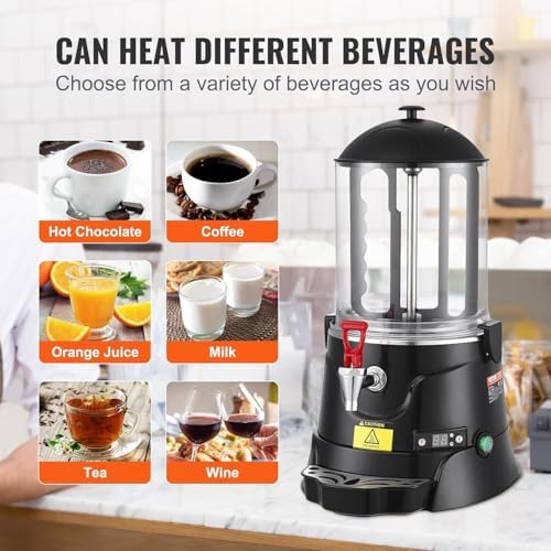 Introducing our Electric Hot Beverage Dispenser, an essential addition to any café, restaurant, or event space looking to enhance their beverage offerings. This versatile machine is not only perfect for serving rich hot chocolate but also excels in preparing hot apple cider and a variety of warm beverages. Its user-friendly design ensures that you can easily clean and operate it, making it a practical choice for busy environments. Key Features: - **Efficient Mixing**: The internal rotating paddle guarantees that every drink is perfectly mixed and prevents clumping or burning at the bottom. This feature ensures a consistently smooth and delicious beverage for your customers. - **Automatic Heating**: With an intelligent temperature control system, the dispenser automatically restarts heating when the liquid temperature drops below your set level, ensuring that drinks are always served at the ideal temperature. - **User-Friendly Design**: Equipped with food-grade stirring leaves, a touch button interface, and an easy-to-read LCD display, this dispenser is designed to simplify the beverage preparation process. Specifications: - **Material**: Made from durable 304 stainless steel and PVC. - **Power**: Maximum power of 400W, with a frequency of 50/60Hz. - **Temperature Range**: Adjustable from 30℃ to 90℃ (86℉ to 194℉). - **Capacity Options**: Available in 5L and 10L sizes. - **Weight**: 6KG for the 5L model and 7KG for the 10L model. - **Dimensions**: 40*32*47 cm for the 5L model and 40*32*57 cm for the 10L model. Please note: To prevent solidification of beverages when the machine is turned off, it is advisable to remove the barrel or the mixing shaft if the liquid cools down. Elevate your beverage service and impress your customers with our Electric Hot Beverage Dispenser. If you have any questions, feel free to reach out via email. We are committed to providing prompt assistance!