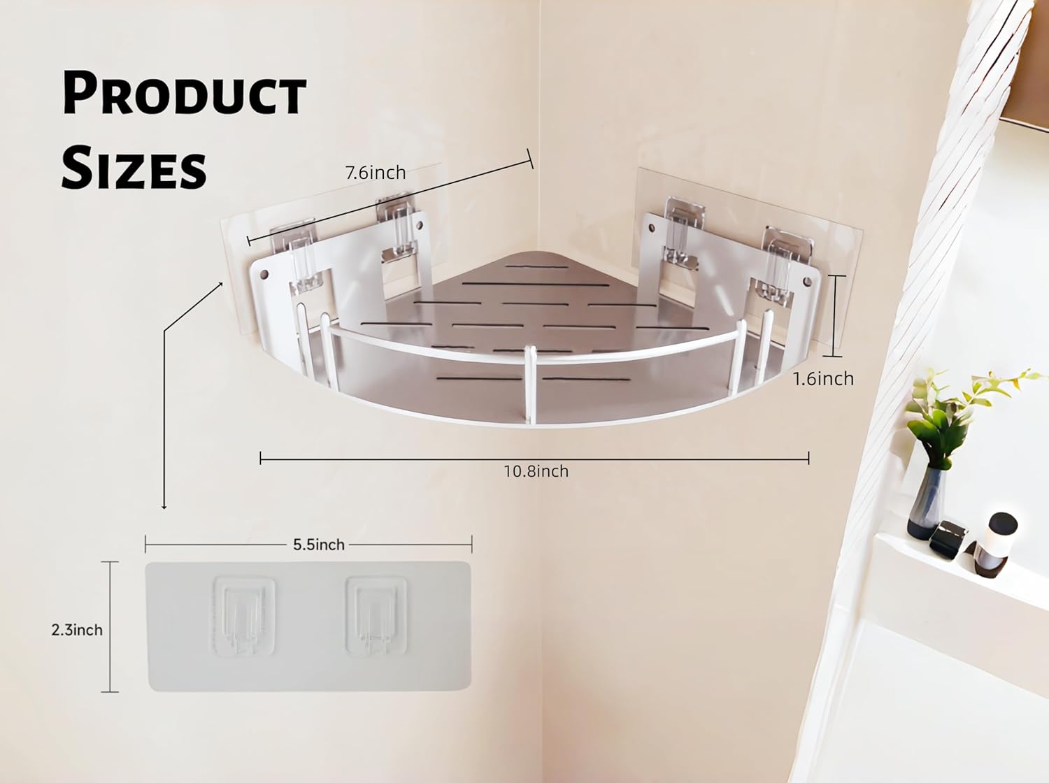 | Included Components | 1 Pack Installation Instructions, 2 Pack Shower Caddy, 4 Pack Adhesive, 4 Pack Circular cushion particles |