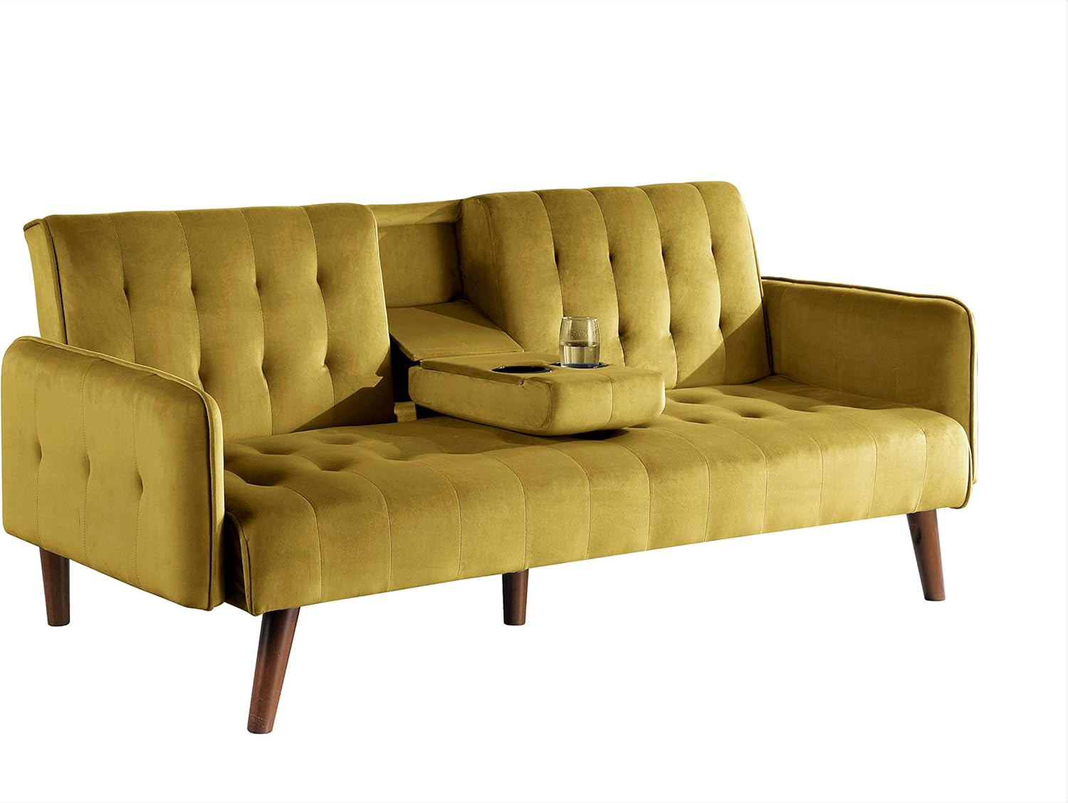 Bring A Sophisticated Flair With The Container Furniture Direct Cricklade Sleeper. The Sofa Bed Measures 81" L Inch X 33.5" W Inch X 39.4" H Inch And Weighs 108 Lbs. The Sofa Features Durable Fabric. Features Luxurious Pleats And Tufts, Plus Plush Velvet Upholstery That Is Both Soft And Smooth To The Touch. Features A Central Console With Cupholders. This Sofa Bed Allows You To Sleep On Velvet, Quite Literally. Container Furniture Direct Prides Itself On Being Able To Provide Its Customers With Quality, Dependable And Fashionable Furniture That Is Durable, Sturdy And As Always Appealing To The Eye.