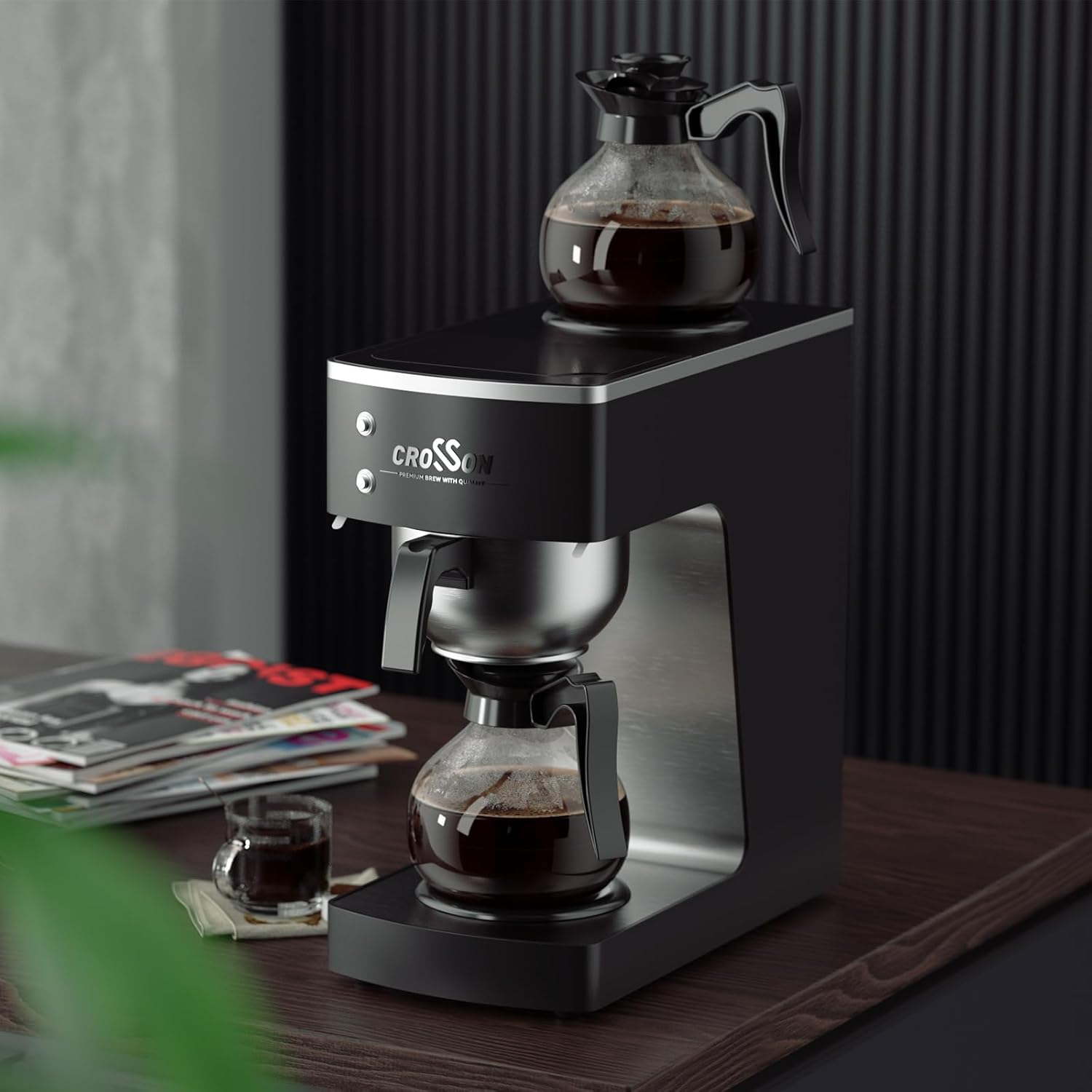 crosson 200 Cup/hour Commercial Drip Coffee Maker, 7.2L Pour Over Coffee Brewer with 4 Glass Decanter&Warmers and Easy Clean Fingerprint Free Housing and 304 Stainless Steel Funnel,