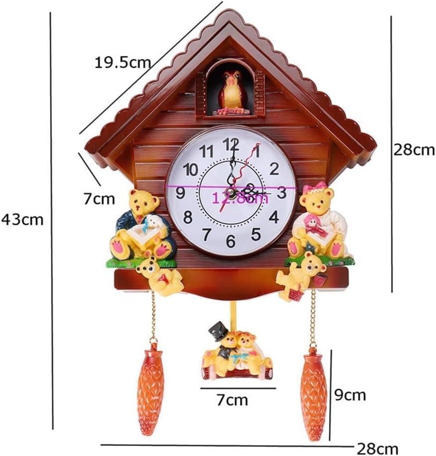 Features:*Artistic Design: The wall-mounted cuckoo pendulum clock features a charming house design intricately carved to imagination and enhance your home’s aesthetic appeal. *Accurate Timekeeping: This clock not only serves as a decorative art piece but also provides reliable timekeeping you stay punctual while enjoying its beauty. *Decor: Perfectly suited for various such as living rooms offices studies bedrooms hotels and classrooms it a whimsical to any space. * Craftsmanship: The exquisite workmanship and three-dimensional design of the clock highlight the attention to detail making it a standout piece in your home decor. *Nature-inspired Charm: Infuse your living space with the essence of nature bringing a delightful and playful element that captivates both children and adults alike. Specifications:*Part Name:Wall Clock*Material:ABS*Size:43x28x7cm*Color:Brown*Battery:4xAA Battery( Battery are not included)Package Content:1x Wall Clock
