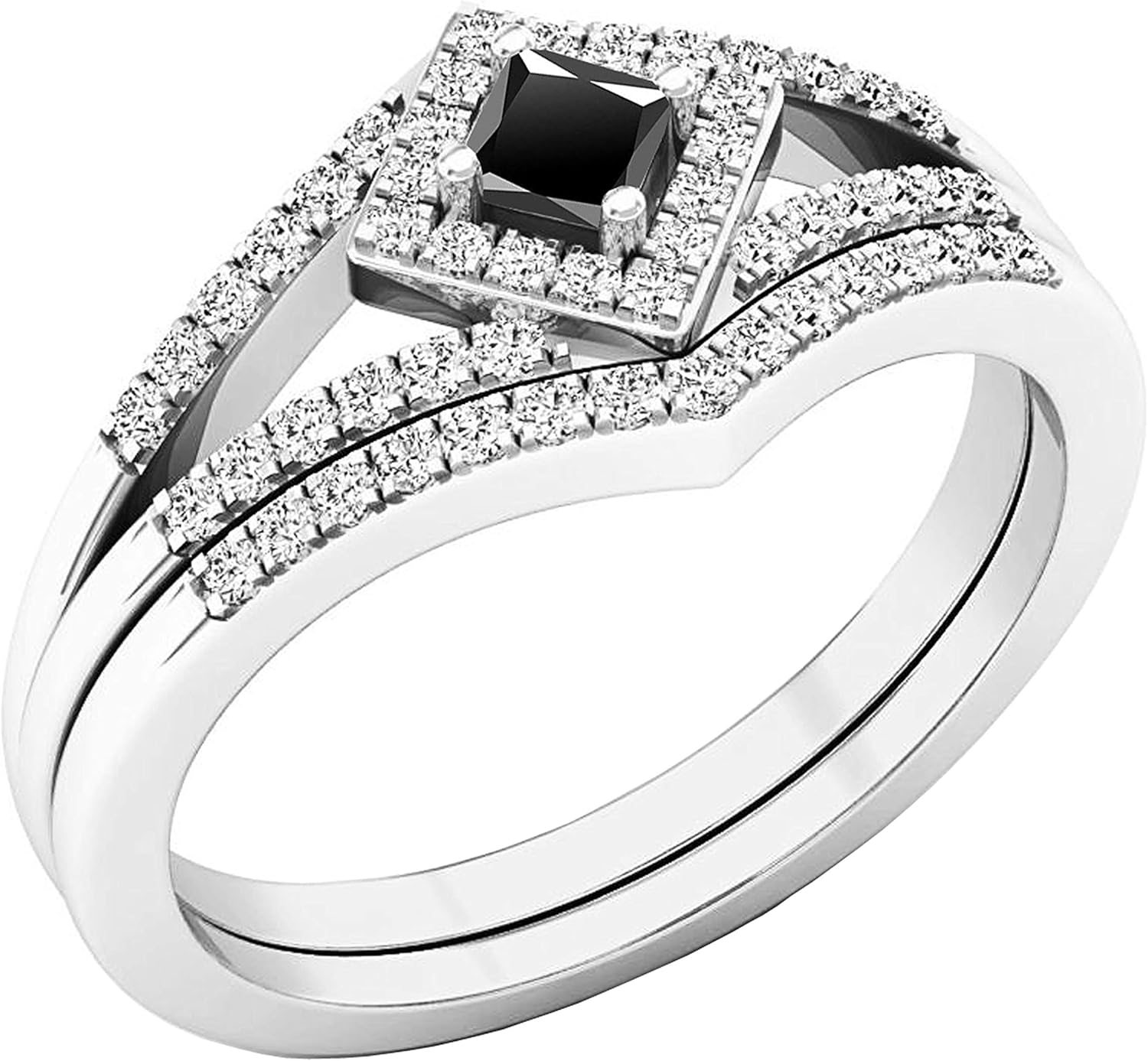 This lovely engagement bridal ring set featuring 2.5 MM princess gemstones & 0.15 ct. round white diamond in prong-setting. All white diamonds are Natural & non-treated, minimum diamond color is I-J & clarity is I2-I3. All diamonds are Sparkling. Our product includes a complimentary jewelry box for safe storage and presentation. SKU # K6532