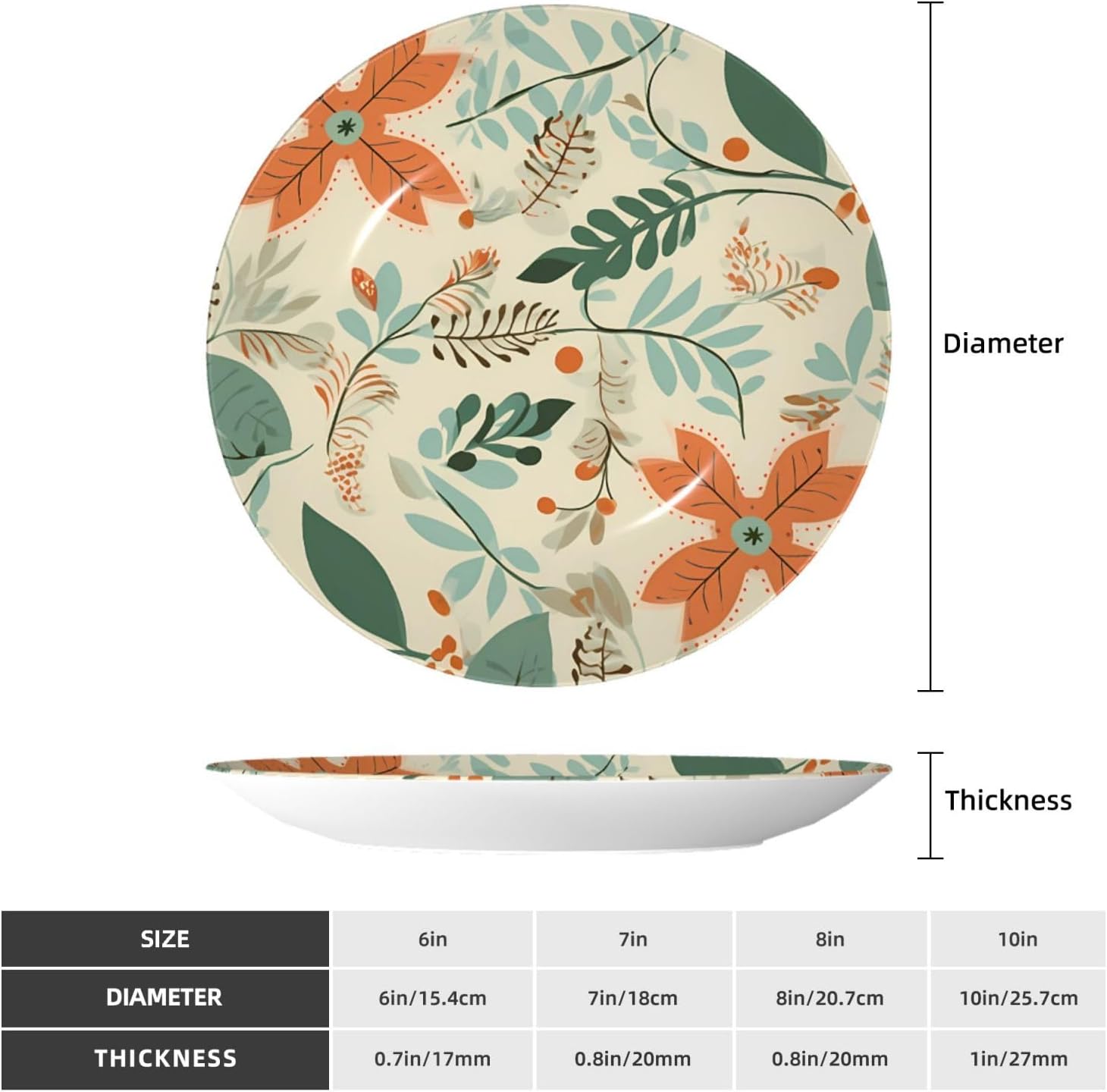gokays decorative platedo you feel that your table is monotonous? Then use our decorative plate to add a little fun to the monotony of life.featuressize - 6 inch diameter;7 inch diameter;8 inch diameter;10 inch diametermaterial - ceramic design - Leaves and flower package - 1 x ceramic decorative plate, 1 x stand, 1 x pothookwhy choose gokays decorative plates?advantageas manufacturers we follow current trends and bring you the latest home fashion. Salad plates ideal for placement at home or in the office. Traditional porcelain making technology, fine workmanship. Ceramic dinner plates is a good gift for family and friends.convenient to useour dinner plates rack for display has 2 ways to use, you can just place the bracket base on a flat surface first, and then put the plate on it, also you can stick the provided pothook at the back of the plate, and then stick the plate on the wall, you can choose the suitable installation method according to the actual situation.occasionour ceramic ornaments salad plates is a perfect decorative and collection for any niche, table, or mantle at your home. Perfect for your office, home, living room, dining room, playroom, kitchen, cafe, study, studio, club, bar, and others.in a surprise for your family and friends!porcelain dessert plates is a perfect gift for any person in your life. You can give it directly to your lover as mother's day gift/father's day gift/birthday gift/christmas gift/valentines day gift/anniversary gift/wedding gift/housewarming gift/new home gift.start with our funny decorative plate, refresh your rooms!