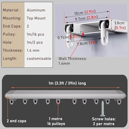 Are you looking for curtain track accessories that make hanging double curtains easy? Our Slimline Ceiling Track is the ideal solution, expertly designed for two-layer curtains. This complete set comes with all necessary mounting materials, ensuring a straightforward installation that is both durable and reliable. **Product Features:** - **Color Options:** Available in White, Black, or Gray to seamlessly blend with your decor. - **Ceiling-Mounted:** Perfect for achieving a clean, modern aesthetic. - **High-Quality Material:** Made from robust aluminum alloy with a thickness of 1.4 mm for lasting strength. - **Custom Lengths:** Easily adjustable to fit your unique window dimensions. - **Smooth Operation:** Features 16 nano-silent rollers per meter, allowing for quiet and effortless curtain movement. - **Strong Support:** With two screw holes per meter, our track is designed for high load capacity, ensuring reliable use. This curtain track offers a straightforward installation process, providing optimal light control and privacy. Its innovative double-track design accommodates two layers of curtains, giving you versatile options for your window treatments. The ultra-thin profile allows your windows to open and close freely, without obstruction. **Package Includes:** Track, curtain rollers, end caps, connectors, and screws for a complete setup. **Please Note:** For tracks longer than 150 cm, sections will be delivered with special connectors that maintain full functionality. Minor measurement deviations of 1-3 cm may occur due to manual measurement. Transform your living space with our curtain track that balances aesthetic appeal with practical functionality. Whether your goal is elegance or utility, our product is designed to enhance your interior while ensuring ease of use and maintenance. Experience smooth sliding and a refined look for your curtains today!