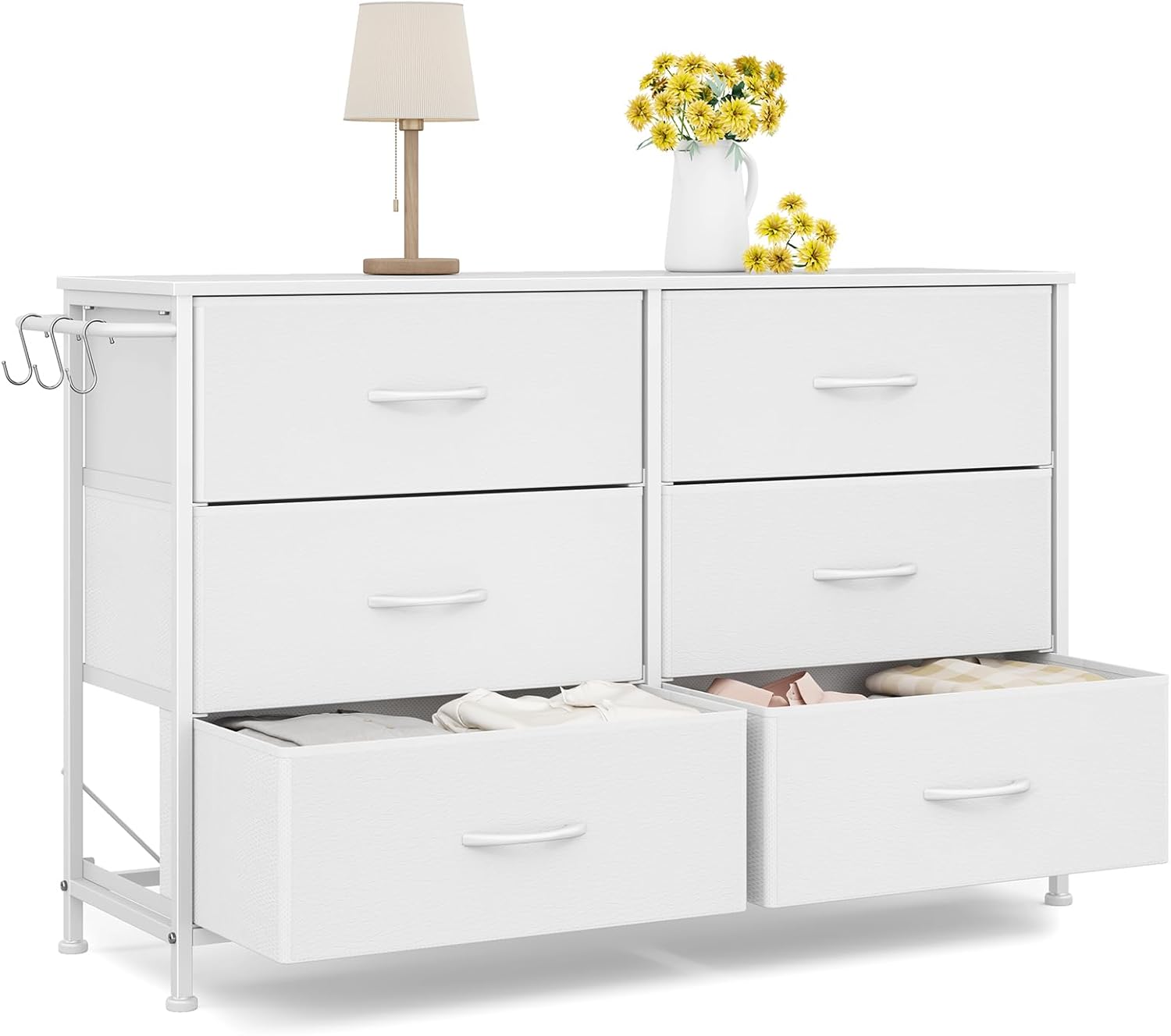 | Included Components | Dresser Storage Unit, Fabric Drawers, Installation Tools & Instructions, Metal Frame, Adjustable Feet, Side Hooks, Wooden Top Panel |