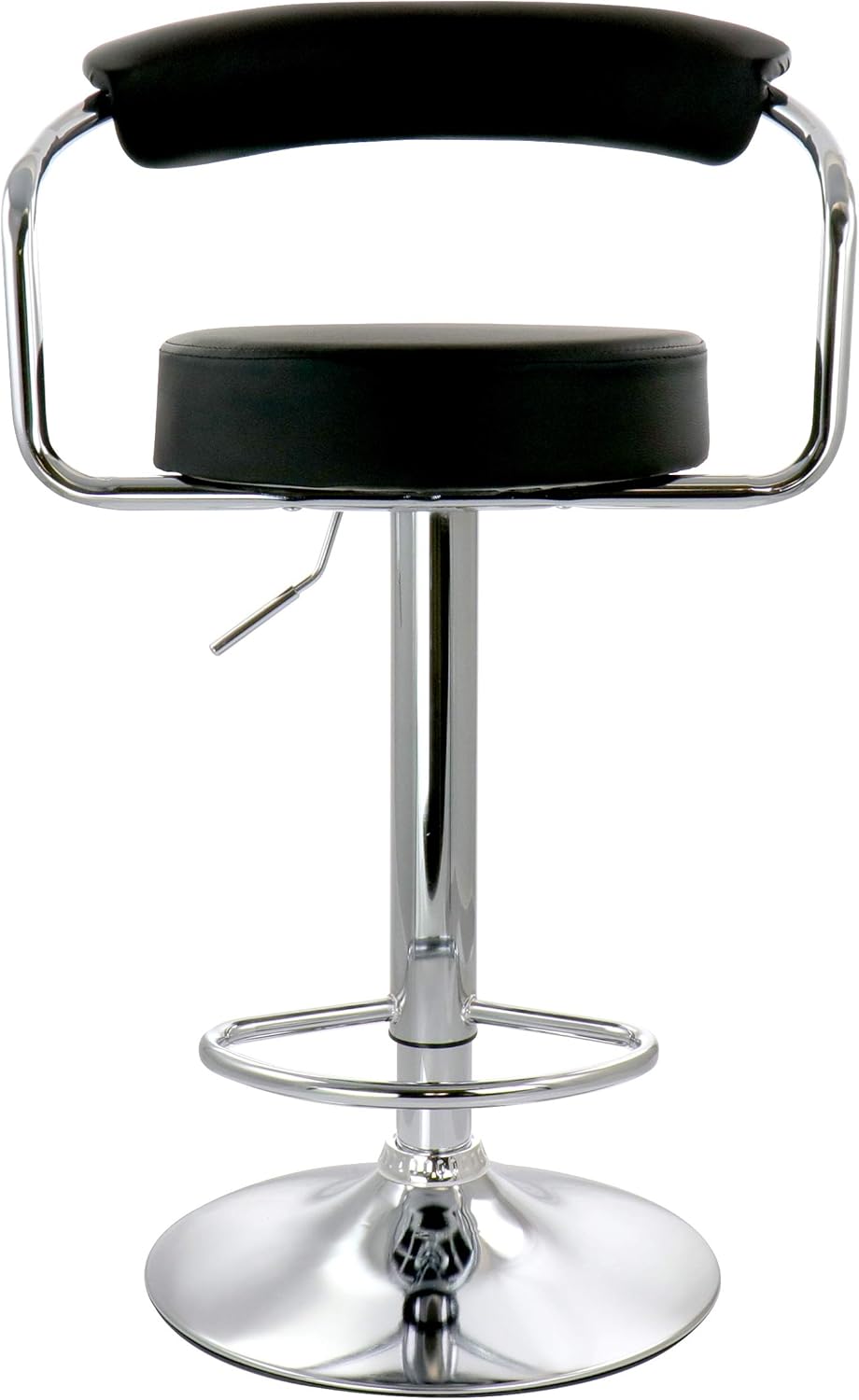 Add a stylish touch to your home bar or kitchen counters with the Elama 2 Piece Faux Leather Retro Adjustable Bar Stool in Black with Chrome Handles and Base. This set of chairs is uniquely retro shaped for a fun addition to any room. Swivel base is perfect for movability and adjustable height allows you to customize these stools to whatever height is most comfortable and convenient for your home counters. These adjustable chairs are crafted from quality metal and faux leather for a strong and long lasting design.