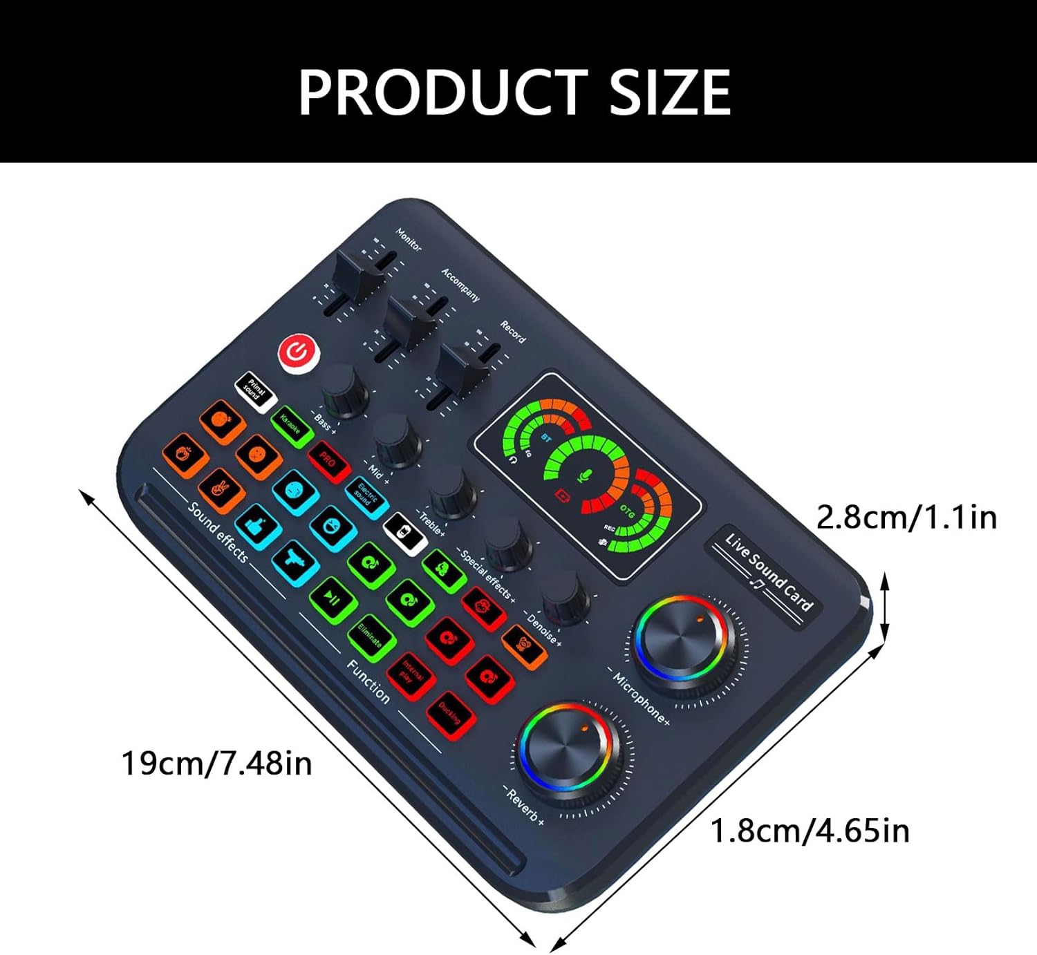 F999 Live Sound Card With Adjustment Noise Reduces Voice Changer Changing In Live Performances And GamingFeatures:unparalleled auditory sound with the F999 Live Sound Card, to deliver superior sound performances and customizable effects for exceptionally auditory Featuring multiple sound effect and a user friendly USB port connection, this sound card offering strong compatibility and personalizing setting.For streamers, podcast creators, music enthusiasts, and anyone high auditory output, the F999 caters to auditory needs.Perfectly for online streaming, studio virtual meetings, and karaoke entertainment, this versatiled sound card adapts to various auditory application scenario.From durability ABS, the F999 Live Sound Card ensures long service and reliability, making it essential component in your auditory setting.Specifications:Item: F999 Live Sound CardSize:about 190x118x28mm/7.48x4.65x1.1inComponent:ABSInterfaces: USB Channel:Double ChannelAuditory EAX4.0 Package Includes:1PC F999 Live Sound CardNote:Due to problems of lighting effect, there might be tolerances in product, please understand.Please allow 0-1cm error due to manual measurement.