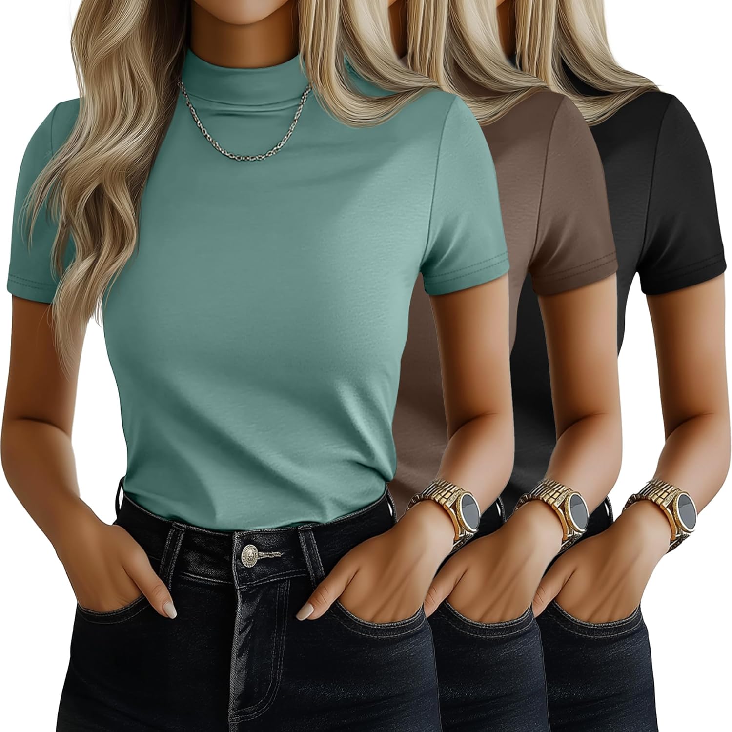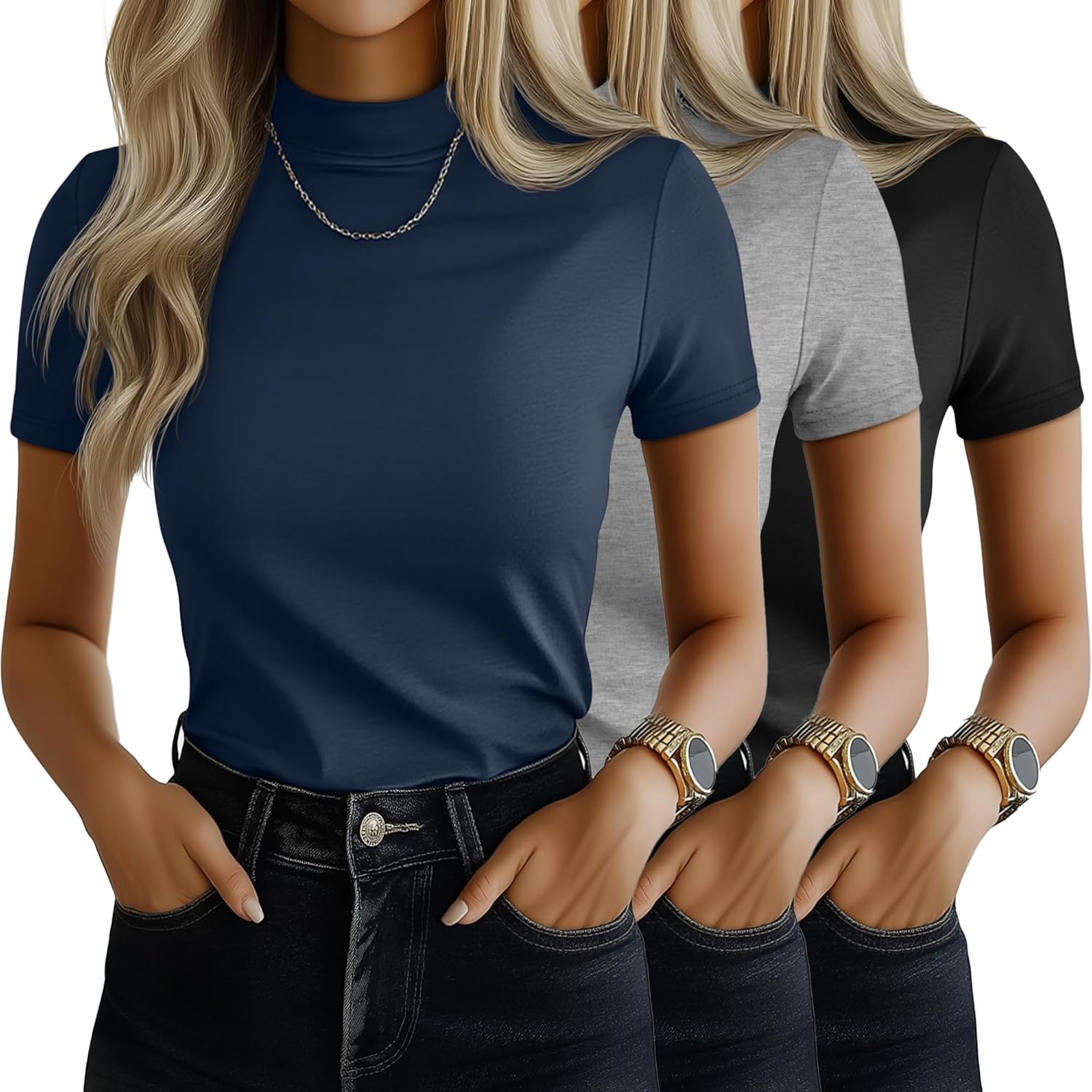 • Package Included: You’ll get 3 pieces of these women's mock neck shirts in one pack; They work seamlessly for workdays, weekend coffee runs, gym sessions, beach trips, birthday gatherings, or casual vacations; These tees check boxes for your diverse daily dressing needs