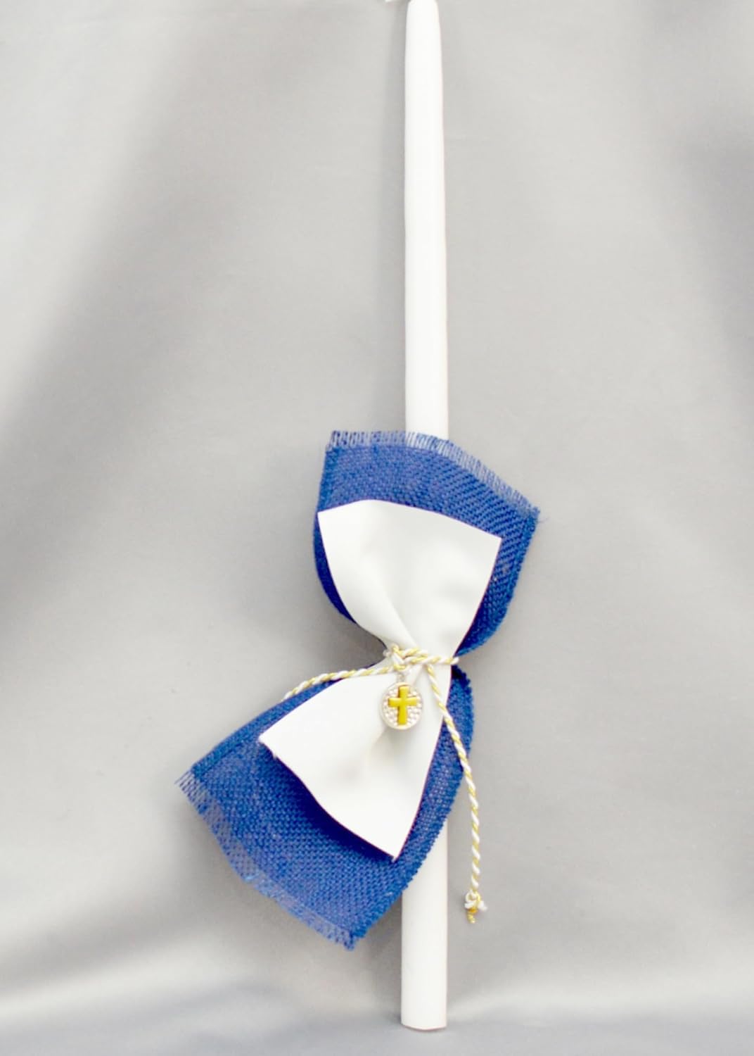 Golden accents and a bold double bow make this Easter candle a vibrant expression of joy and tradition.