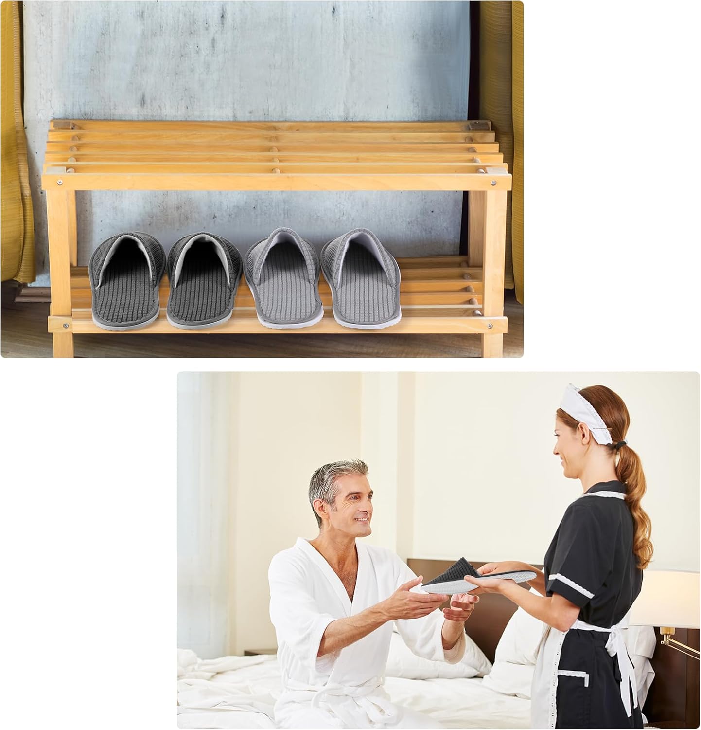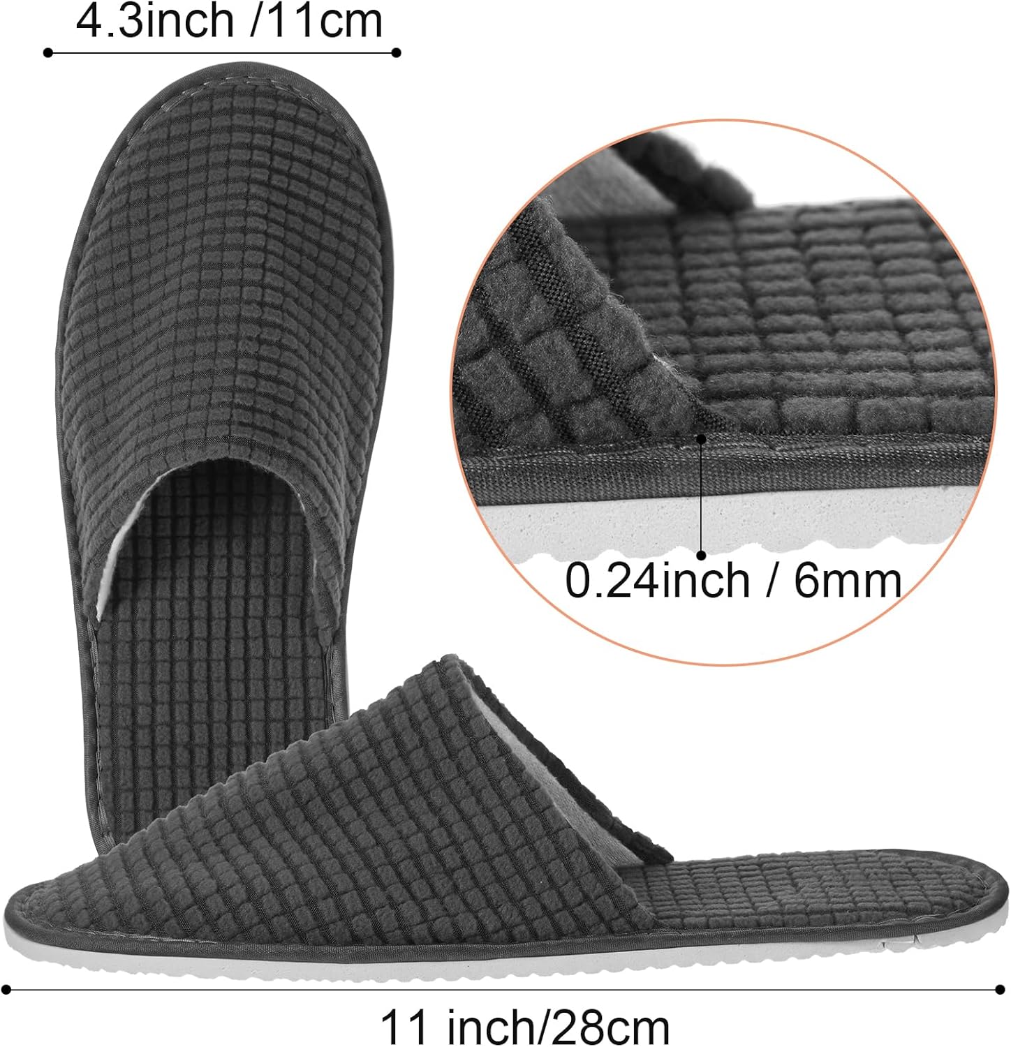 Features: Heartwarming gifts: It is a nice choice for you to send these spa slippers as housewarming gifts to your neighbors, good friends, colleagues, classmates, cousins, aunts and other relatives. Good performance: These disposable slippers for guest adopt closed toe design, making you feel warmer compared to toeless slippers. They are lightweight, convenient for you to store and carry. Specifications: Material: toweling with EVA sole, plastic bagColor: as pictures shownSize: approx. 28 x 11 cm/ 11.02 x 4.33 inches, 0.6 cm/ 0.24 inches in thicknessTotal: 24 piecesPackage includes: 24 x House slippers for guestNotes: Manual measurement, please allow slight errors on size. The color may exist slight difference due to different screen displays.